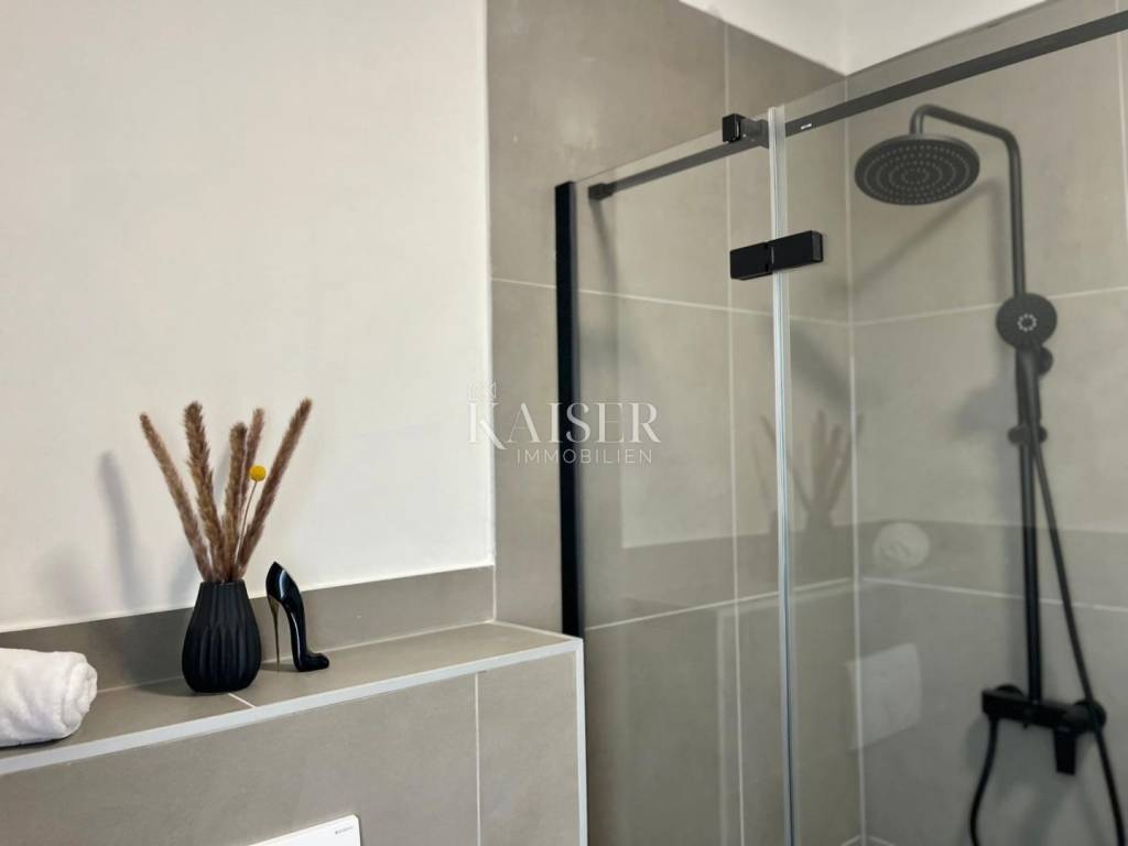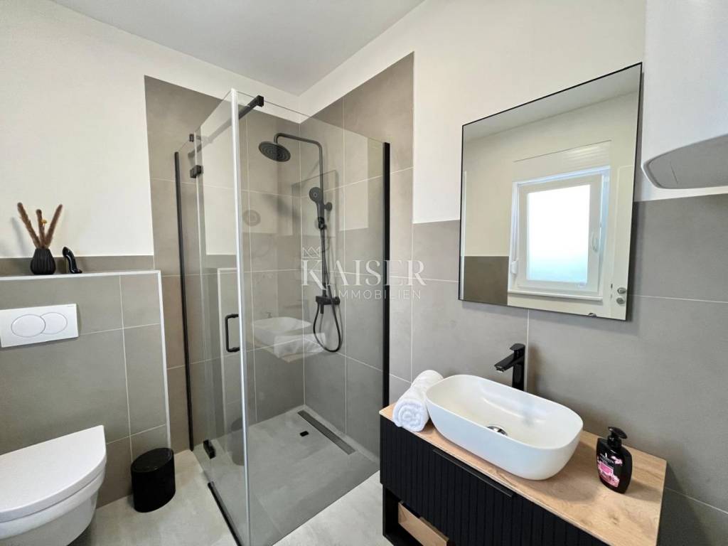 Kaiser Immobilien presenta: Attico con ampia terrazza sul tetto in un nuovo edificio, Vir - Pedinka In una delle zone più belle dell'isola di Vir, nelle immediate vicinanze della famosa spiaggia di Pedinka, questo splendido e confortevole appartamento si trova al secondo piano di un nuovo edificio. Con un'ampia terrazza sul tetto che offre una vista aperta, questa proprietà è l'occasione perfetta per una vacanza di lusso e un investimento intelligente nel turismo. INFORMAZIONI SULL'IMMOBILE: Designazione: Appartamento S4 (Secondo piano/Attico) Superficie utile netta totale: 87,15 m² Questo appartamento con due camere da letto offre un comfort eccezionale e molta luce, ed è venduto con proprietà ordinata, pronto per essere occupato. L'edificio è stato costruito secondo tutti gli standard e dispone di tutta la documentazione necessaria. DISPOSIZIONE DELL'APPARTAMENTO: Zona giorno (open space): Ampia cucina con sala da pranzo e soggiorno in un'unica unità (28,3 m²), con accesso a una terrazza coperta. Camere da letto: Due comode camere da letto (16,0 m² e 13,5 m²). Servizi igienici: Bagno e ulteriore WC separato. Scala: Scala interna (11,5 m²) che conduce alla terrazza sul tetto. CARATTERISTICHE SPECIALI E SPAZIO ESTERNO: Terrazza sul tetto (36 m²): Il fiore all'occhiello di questo appartamento è una spaziosa terrazza sul tetto aperta, ideale per prendere il sole, rilassarsi, incontrarsi la sera e godersi il panorama. Terrazza coperta aggiuntiva (8,2 m²): Perfetta per il caffè del mattino o per sfuggire al sole. Due posti auto: L'appartamento è dotato di due posti auto custoditi nel cortile. Giardino in comune con barbecue: Tutti gli inquilini hanno accesso a un'area giardino in comune di 40 m² con un grande barbecue, ideale per socializzare. POSIZIONE: La proprietà si trova in una posizione eccellente nel villaggio di Pedinka, noto per le sue bellissime spiagge e il mare limpido. La vicinanza della spiaggia, l'ambiente tranquillo e il facile accesso a tutti i servizi che l'isola di Vir offre rendono questa posizione perfetta per una vacanza o un soggiorno durante tutto l'anno. Questo appartamento è una rarità sul mercato grazie alla sua posizione, all'ampia terrazza sul tetto e ai due posti auto. Non perdere questa opportunità unica! La commissione d'agenzia per l'acquirente è del 3% + IVA e viene corrisposta, in caso di acquisto immobiliare, alla stipula del primo atto notarile. La visione dell'immobile è possibile solo previa firma di un contratto di mediazione nelle transazioni immobiliari. Per visitare l'immobile di persona, contattare: Joško Bašić E-mail: josko@kaiser-immobilien.hr Tel: +385-91-511-2993 http://kaiser-immobilien.hr/