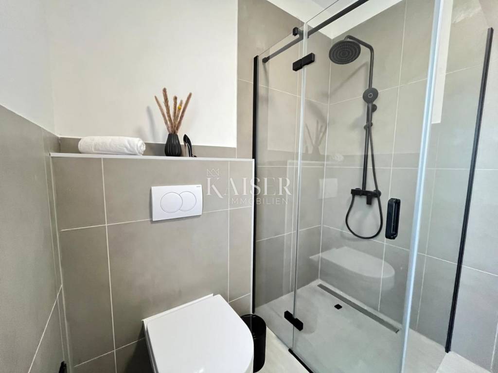 Kaiser Immobilien presenta: Spazioso appartamento con tre camere da letto (S1) al piano terra, Vir - Pedinka In una delle zone più attraenti dell'isola di Vir, nel tranquillo villaggio di Pedinka, si trova questo appartamento con tre camere da letto estremamente confortevole e spazioso. Situato al piano terra di una nuova villa urbana, offre tutti i vantaggi della vita moderna, a pochi passi dalla bellissima spiaggia. INFORMAZIONI SULL'IMMOBILE: Designazione: Appartamento S1 (Piano terra) Superficie utile netta totale: 107 m² Questo appartamento di alta classe offre una disposizione straordinaria e molto spazio, ideale per una famiglia numerosa o come investimento per un affitto turistico di alta classe. L'immobile viene venduto con proprietà ordinata, pronto per essere acquisito. DISPOSIZIONE DELL'APPARTAMENTO: Zona giorno (open space): Ampio soggiorno con cucina e sala da pranzo in un'unica unità (34,1 m²), con accesso a una terrazza coperta. Tre comode camere da letto: Camera 1: 13,2 m² Camera 2: 10,0 m² Camera 3: 11,3 m² Servizi igienici: Ampio bagno (6,1 m²) e ulteriore WC separato (3,4 m²). Stanze aggiuntive: Ingresso (5,0 m²), corridoio (9,2 m²) e persino tre ripostigli (4,8 m², 3,9 m², 5,1 m²) che offrono ampio spazio di archiviazione. Terrazza coperta (6,7 m²): Un luogo ideale per rilassarsi e trascorrere del tempo all'aria aperta. VANTAGGI SPECIALI E SPAZIO ESTERNO: Due posti auto: L'appartamento dispone di due posti auto custoditi nel cortile. Cortile in comune con barbecue: Tutti gli inquilini hanno accesso a un'area comune di 40 m² nel cortile con un grande barbecue, ideale per le riunioni estive. Costruzione di qualità: L'edificio è stato costruito secondo tutti gli standard edilizi applicabili e dispone di tutta la documentazione necessaria. POSIZIONE: L'immobile si trova in una posizione eccellente nel villaggio di Pedinka, noto per le sue bellissime spiagge e il mare cristallino. La vicinanza alla spiaggia, la tranquillità e il facile accesso a tutti i servizi che l'isola di Vir offre rendono questa posizione perfetta per una vacanza o un soggiorno durante tutto l'anno. Questo appartamento è una rarità sul mercato grazie alle sue dimensioni, alle tre camere da letto e ai due posti auto. Non perdere questa opportunità unica! La commissione d'agenzia per l'acquirente è del 3% + IVA e viene pagata in caso di acquisto di un immobile, al momento della conclusione del primo atto legale. La visione dell'immobile è possibile solo previa firma di un contratto di mediazione immobiliare. Se desiderate visitare l'immobile di persona, si prega di contattare: Joško Bašić E-mail: josko@kaiser-immobilien.hr Tel: +385-91-511-2993 http://kaiser-immobilien.hr/