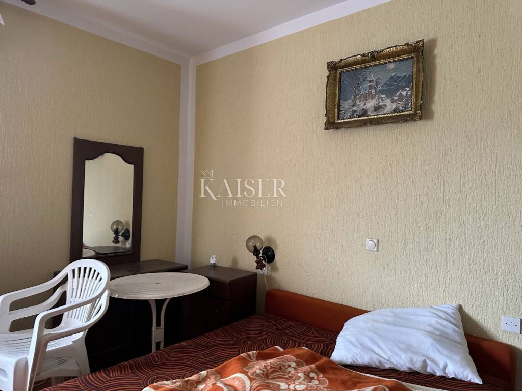 Kaiser Immobilien presenta una casa per l'adattamento a Opatija, a soli 400 metri dal mare. La casa si trova in una posizione tranquilla ed è composta da un piano terra, due piani e un giardino. Al piano terra abbiamo un soggiorno, sala da pranzo, cucina, due camere da letto, bagno e toilette. Al primo piano ci sono due appartamenti con terrazzo e vista aperta sul mare. Ogni appartamento è composto da cucina, sala da pranzo con soggiorno, due camere da letto e bagno. Al piano mansardato abbiamo anche un appartamento composto da tre camere da letto, dispensa, due bagni, cucina, soggiorno con sala da pranzo. C'è un orto dietro la casa. C'è una vista sul mare da tutti i piani e dal piano terra. Per ulteriori informazioni, contattare un agente.