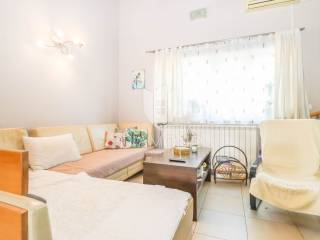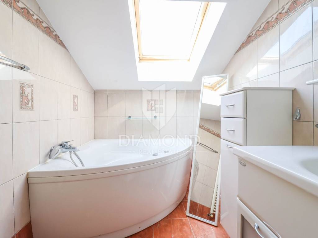 Questa spaziosa casa indipendente è composta da un piano terra e una mansarda alta.Il piano terra è composto da un disimpegno, un ampio guardaroba, uno studio con accesso al terrazzo trasformabile in camera da letto, un bagno, una camera con accesso al terrazzo, un soggiorno, una cucina con sala da pranzo e accesso al terrazzo, una dispensa, una cantina, una taverna ed una camera per gli ospiti, camere da letto e bagni. La parte centrale della taverna è un caminetto rustico che attira immediatamente l'attenzione e crea un'atmosfera e un'atmosfera speciale nella stanza. Inoltre la taverna ha un'uscita separata sulla terrazza oltre all'ingresso principale. Proprio accanto alla porta della taverna si trova la cucina estiva con bagno per gli ospiti. Un'ulteriore camera da letto con bagno è una struttura separata che ha un ingresso principale separato e deve essere completata. Tramite una scala dal soggiorno si accede all'alta mansarda, composta da ingresso, due camere da letto e un bagno. Una camera ha accesso ad un terrazzo con una bellissima vista sul paesaggio. La superficie totale della casa è di 166 m2 ed è circondata da un bellissimo e ampio cortile con una varietà di alberi da frutto e vegetazione con una superficie totale di 1000 m2. Davanti alla casa sono previsti due posti auto, ma le auto possono essere parcheggiate anche nel cortile sull'area verde. Date le dimensioni del terreno c'è la possibilità di costruire un ulteriore fabbricato o una piscina.