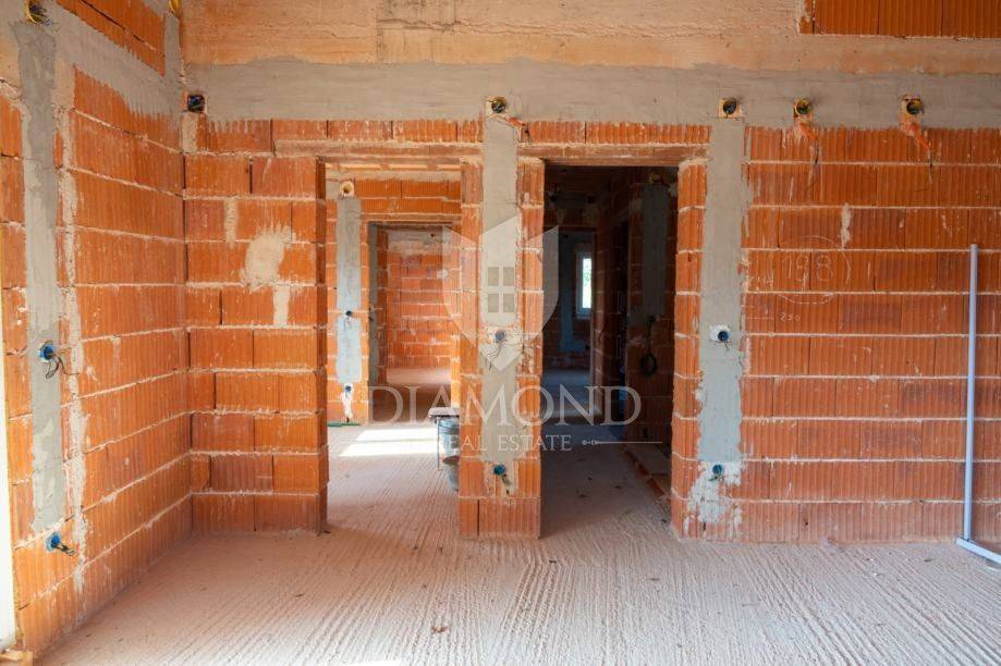 Dignano, dintorni, casa in una posizione tranquilla con due unità abitative e un ampio giardino. Non lontano dal centro di Dignano vendiamo una casa in fase di ristrutturazione elevata con una superficie totale di 279 m2. La casa è composta da due appartamenti e un seminterrato. Il primo appartamento con una superficie totale di 120 mq al piano rialzato è composto da due camere da letto, un soggiorno, una cucina e una sala da pranzo con accesso al terrazzo, un bagno, mentre al primo piano si trova una camera da letto con un balcone e un bagno. Il secondo appartamento, inteso come appartamento con una superficie totale di 69 mq, è composto dal piano terra, dove si trova un soggiorno collegato alla cucina e sala da pranzo, che hanno uscita sul terrazzo, un bagno, mentre al primo piano troviamo due camere da letto con bagno. Il seminterrato della casa con una superficie totale di 89 mq è collegato ad un appartamento più grande, ma se il nuovo proprietario lo desidera è possibile realizzare una terza unità abitativa. Secondo il permesso di costruzione è possibile costruire una piscina. Sono stati realizzati gli impianti per l'elettricità e l'acqua in tutta la casa, è prevista l'installazione del riscaldamento a pavimento e dell'aria condizionata. La casa dispone inoltre di un ampio giardino di 3700 mq, di cui 1824 mq di parte agricola. Nella parte agricola sono presenti 70 ulivi ventennali. La prima casa è a 200 metri. La casa viene venduta allo stato non arredato al prezzo indicato, il che lascia la possibilità al potenziale acquirente di completare i lavori di rifinitura e attrezzare l'immobile secondo i propri desideri e necessità. La proprietà una volta completata ha molte potenzialità come casa vacanza data la posizione tranquilla.