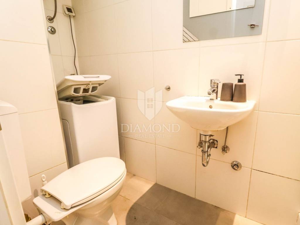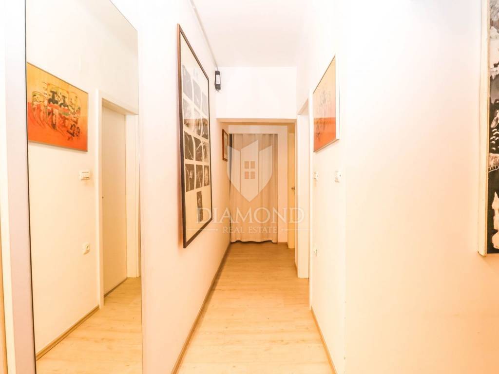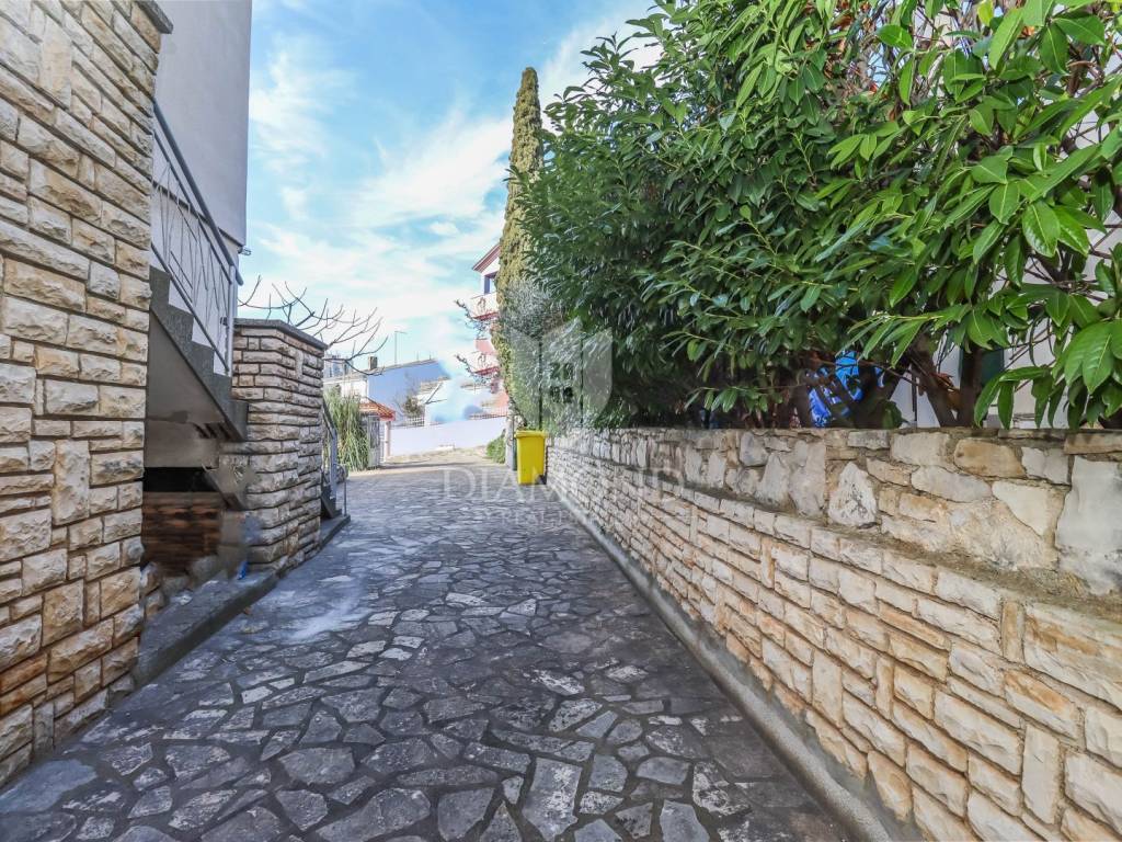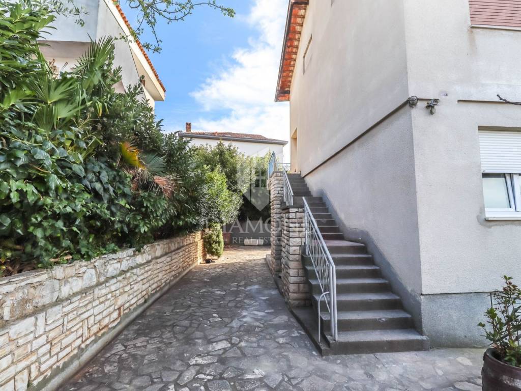 Al piano terra ci sono due appartamenti separati, ciascuno con ingresso indipendente e giardino privato. Il primo appartamento è composto da ingresso, cucina con sala da pranzo, soggiorno, una camera da letto, ripostiglio e bagno. Il secondo appartamento è composto da due camere da letto, una cucina, un soggiorno e un bagno. La superficie totale degli appartamenti è di 107 m² e c'è la possibilità di unirli in un unico grande appartamento, poiché un tempo formavano un'unica unità. Il primo appartamento ha un giardino e una bella terrazza con cucina estiva di 300 m², mentre il secondo appartamento ha un giardino di 40 m². Il valore aggiunto di questa proprietà è il ripostiglio di 28 m², che si trova al secondo piano - seminterrato e può essere convertito in spazio abitabile perché gli impianti sono già stati realizzati. Ogni appartamento dispone di un proprio posto auto antistante il cortile.