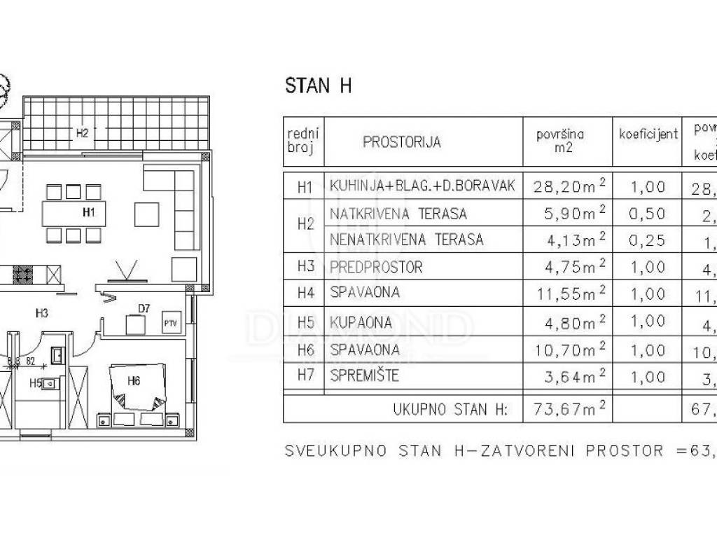 La posizione dell'appartamento è estremamente favorevole, nel pieno centro di Gimino con rapido accesso a tutte le strutture importanti come scuole, asili, istituti sanitari, banche, ristoranti e trasporti pubblici. L'autostrada è a pochi chilometri di distanza e le vicine spiagge dell'Istria sono raggiungibili in 20-30 minuti in auto. Il progetto è attualmente in costruzione, con l'inizio dei lavori previsto per settembre 2024, mentre il completamento è previsto all'inizio del 2026.