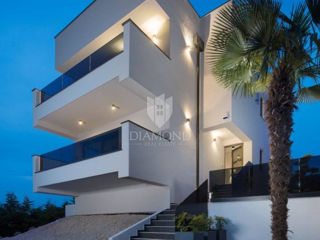 Progettata come una spaziosa villa familiare su due livelli, al piano terra troviamo un ampio soggiorno con cucina e sala da pranzo, che si apre attraverso grandi vetrate su una terrazza coperta e sul solarium con piscina. Gli interni sono luminosi, ariosi e ben collegati agli spazi esterni, offrendo una sensazione di apertura e raffinatezza.