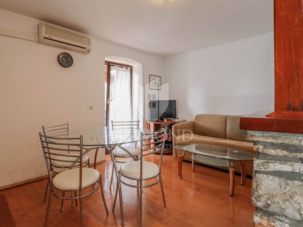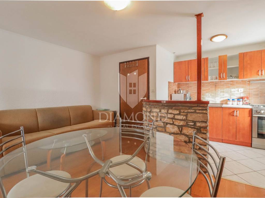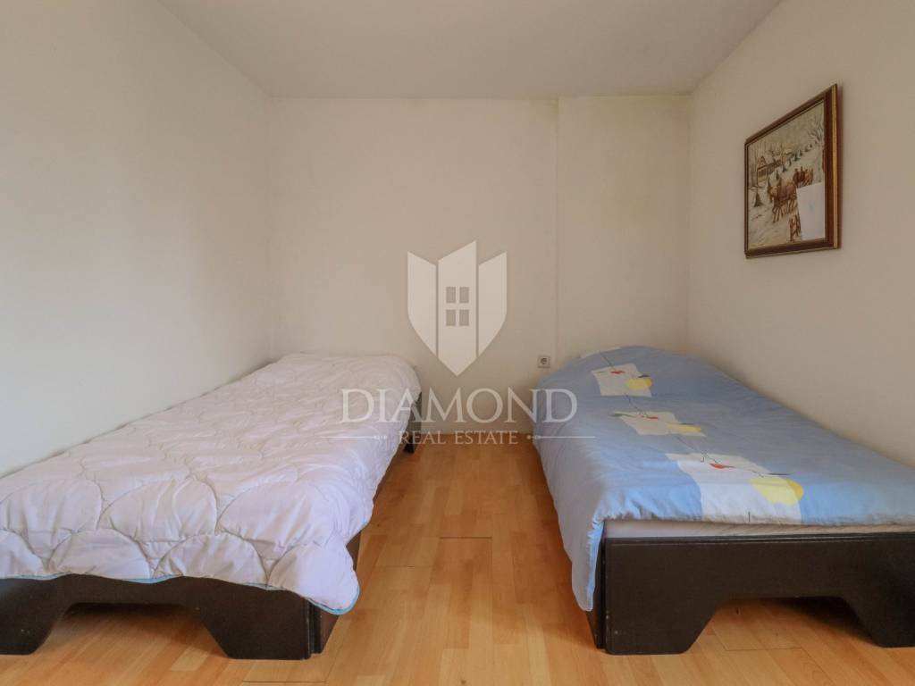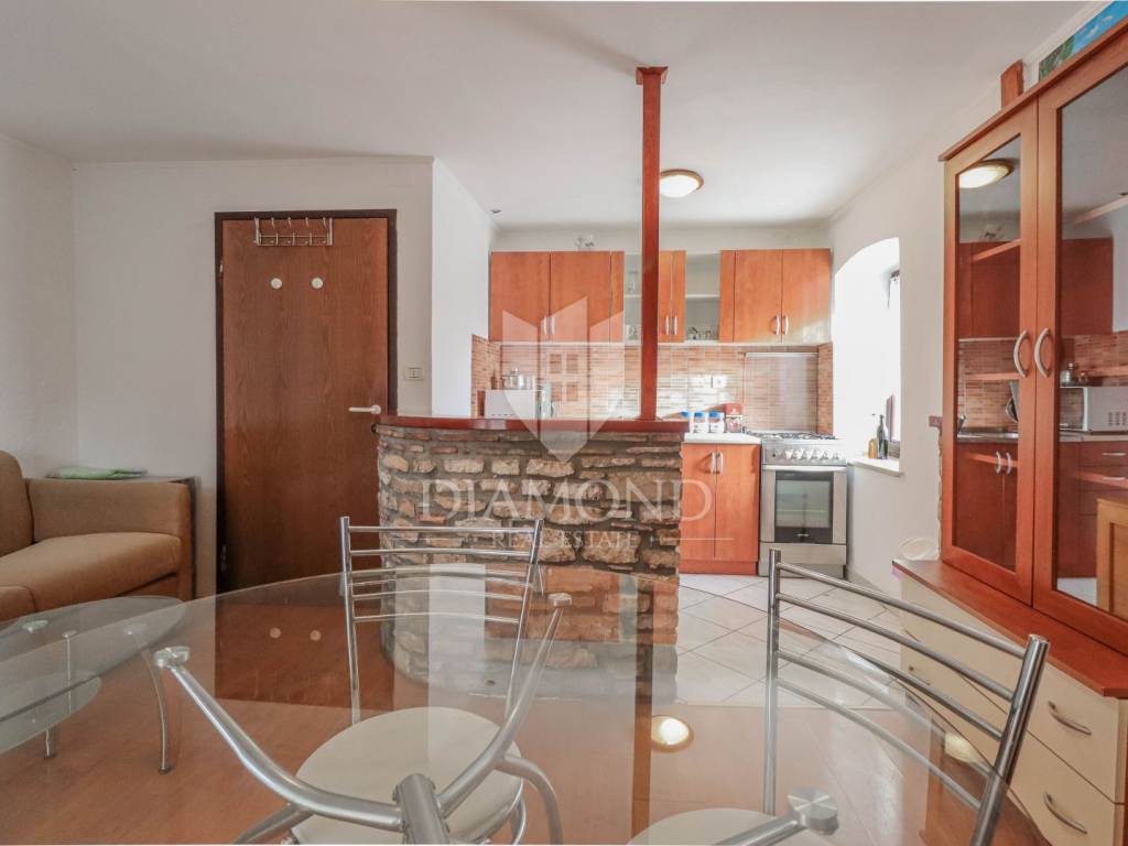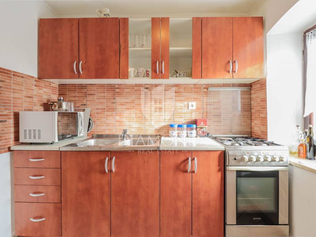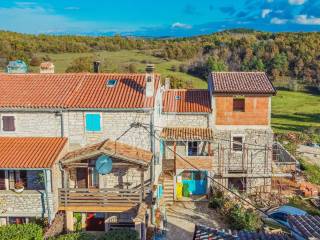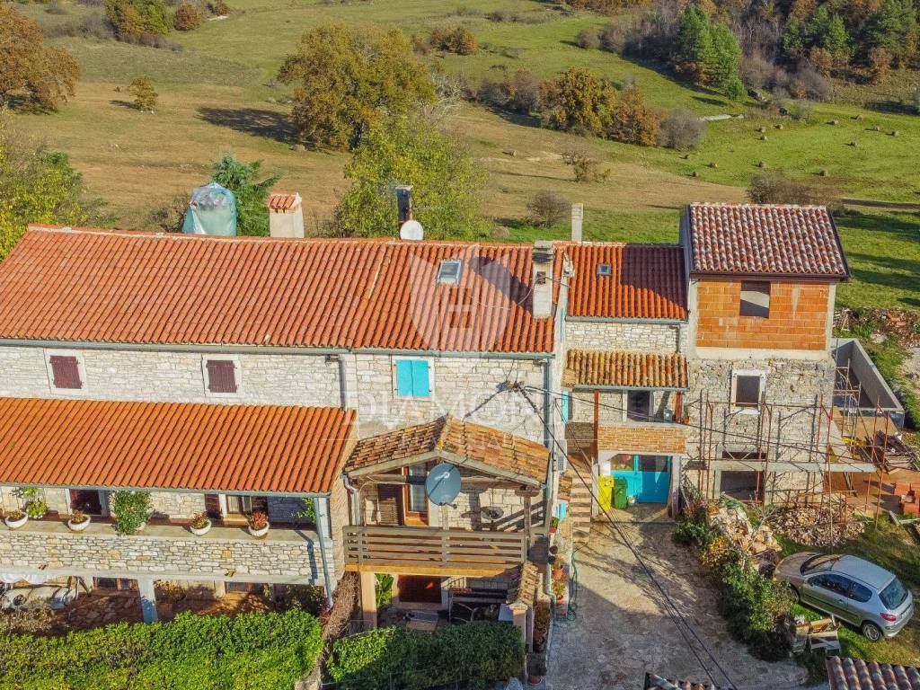 La casa è composta da due appartamenti con ingressi separati. Il primo appartamento, più grande, si sviluppa su tre piani. Il piano terra contiene un soggiorno, un bagno e un corridoio che conduce ad una terrazza coperta con cucina estiva e un bel giardino. Al 1° piano c'è una cucina con sala da pranzo con accesso al terrazzo, e al 2° piano ci sono due camere da letto. Il secondo appartamento è in fase di ristrutturazione. Scale esterne in pietra conducono al 1° piano, dove si trova un soggiorno con cucina e sala da pranzo e un bagno. C'è una grande camera da letto al 2° piano. Il riscaldamento è a legna. La casa dispone anche di un garage, che volendo può essere trasformato in mensa. È stato costruito in stile istriano, con dettagli in pietra e legno tardi che gli conferiscono un bellissimo stile autoctono.