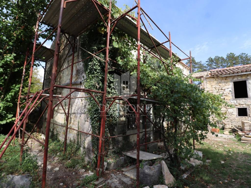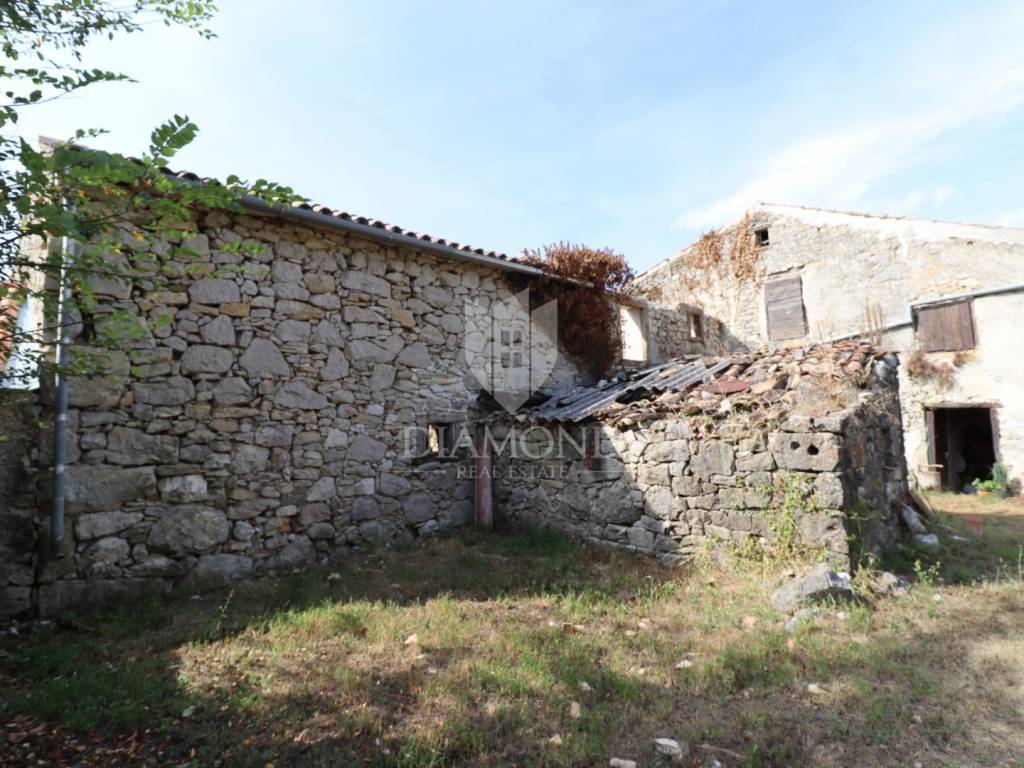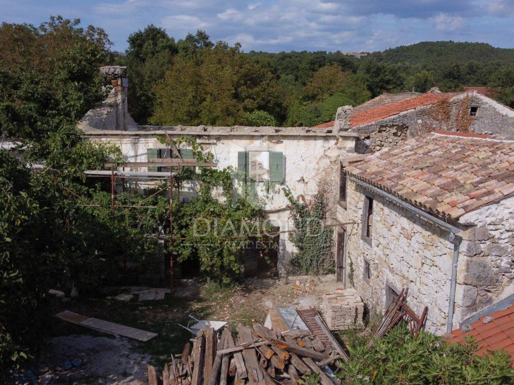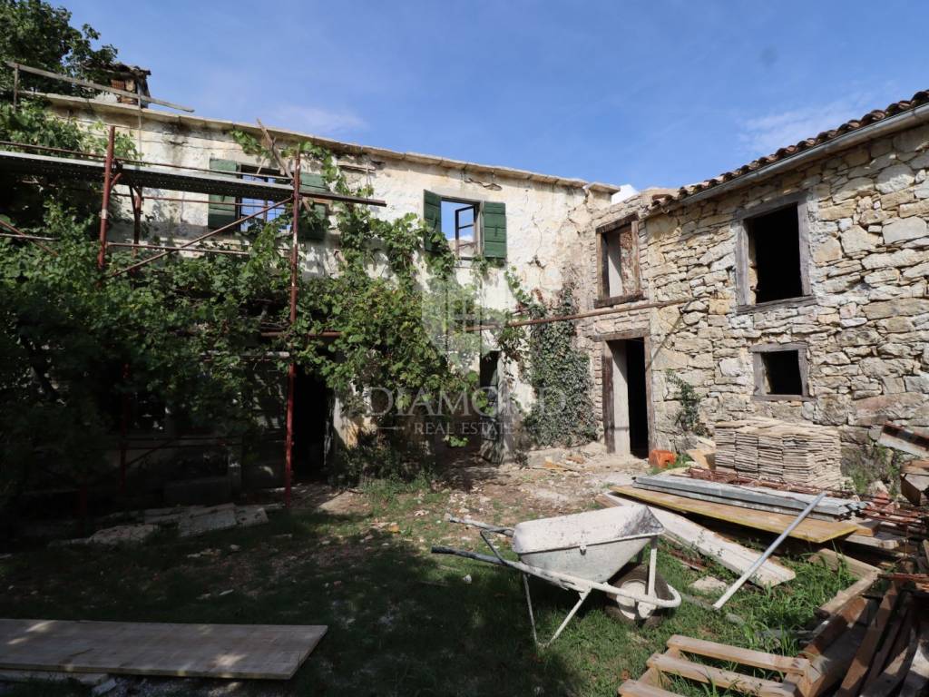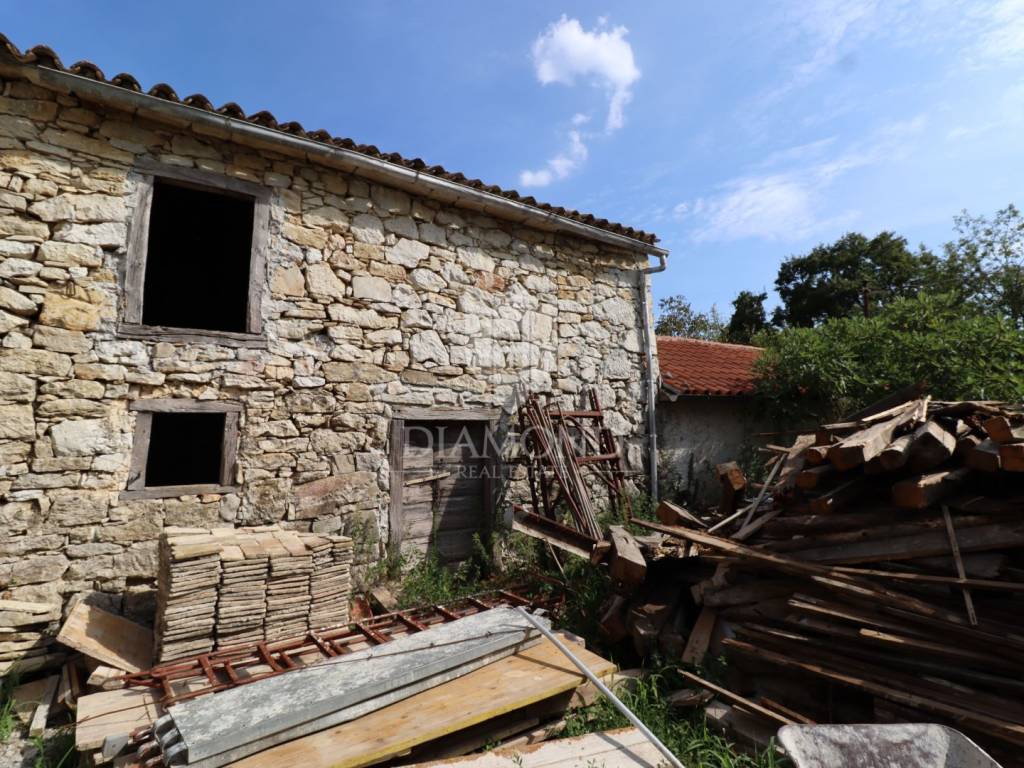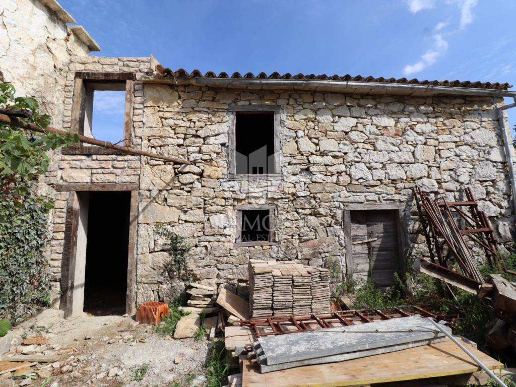 Nel centro dell'Istria verde, circondata dalla natura incontaminata, si trova questa casa in pietra d'Istria la cui ristrutturazione è iniziata. Si trova all'estremità di un dolce villaggio, circondato da numerosi vicini. È facilmente raggiungibile a soli 10 minuti di guida facile da Pinguente e Lupoglav. Grazie alla sua microubicazione molto interessante, all'importanza storica e culturale di Rozzo, alle bellezze naturali e ai numerosi sentieri escursionistici, questa proprietà rappresenta un'opportunità ideale per tornare alla natura, sia per una vacanza di fine settimana che per una vita tranquilla.
