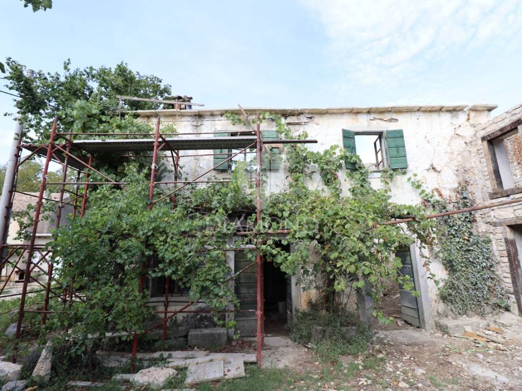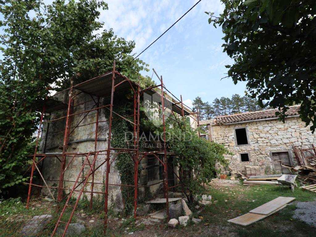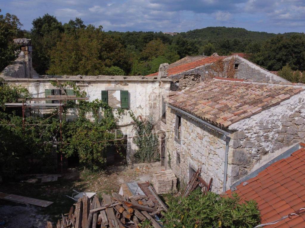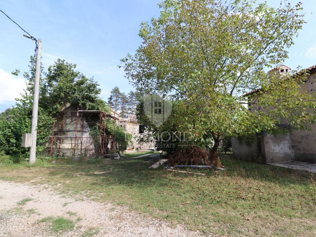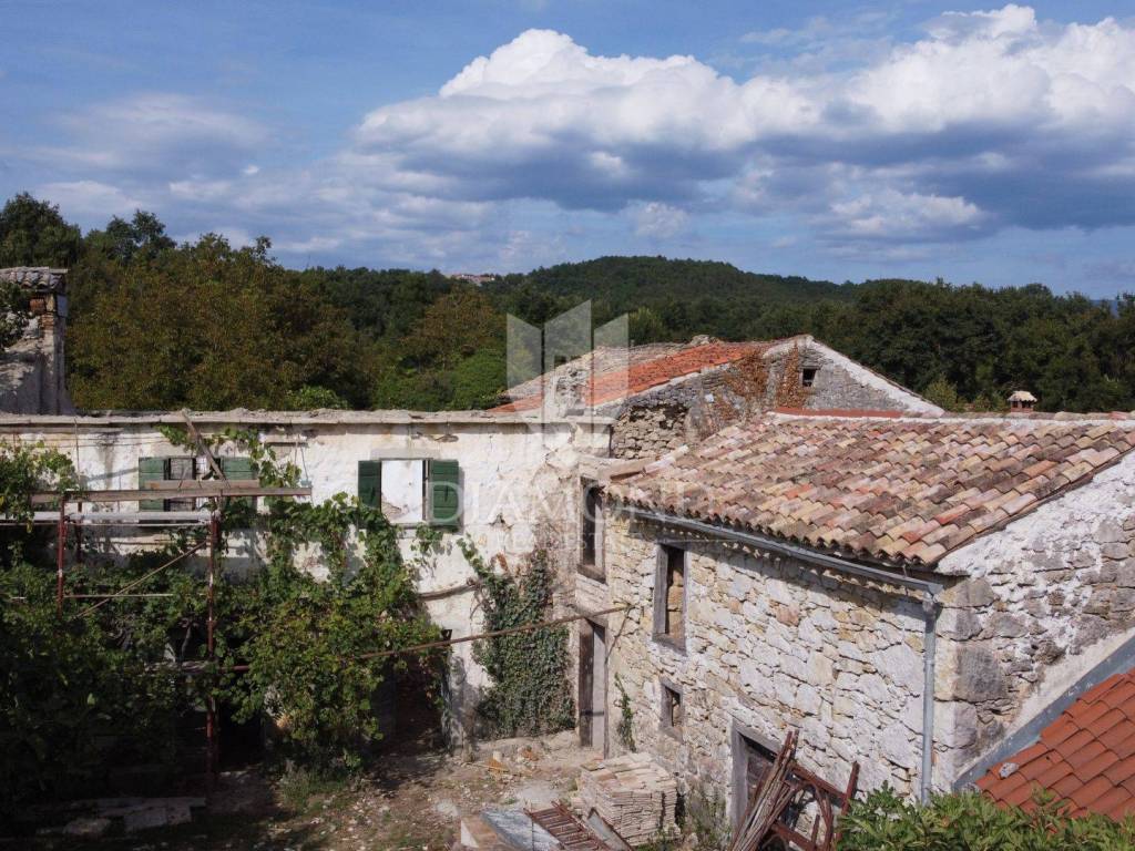 Nel centro dell'Istria verde, circondata dalla natura incontaminata, si trova questa casa in pietra d'Istria la cui ristrutturazione è iniziata. Si trova all'estremità di un dolce villaggio, circondato da numerosi vicini. È facilmente raggiungibile a soli 10 minuti di guida facile da Pinguente e Lupoglav. Grazie alla sua microubicazione molto interessante, all'importanza storica e culturale di Rozzo, alle bellezze naturali e ai numerosi sentieri escursionistici, questa proprietà rappresenta un'opportunità ideale per tornare alla natura, sia per una vacanza di fine settimana che per una vita tranquilla.