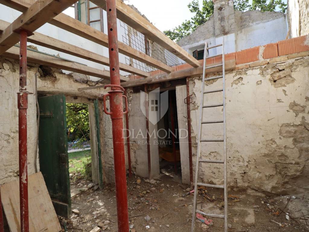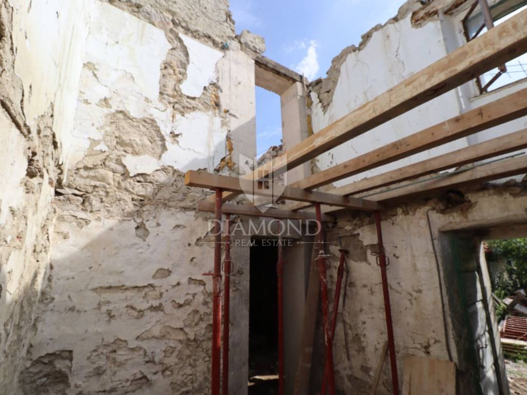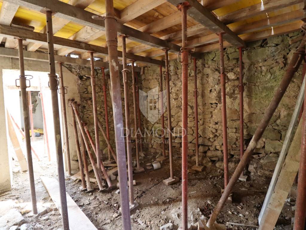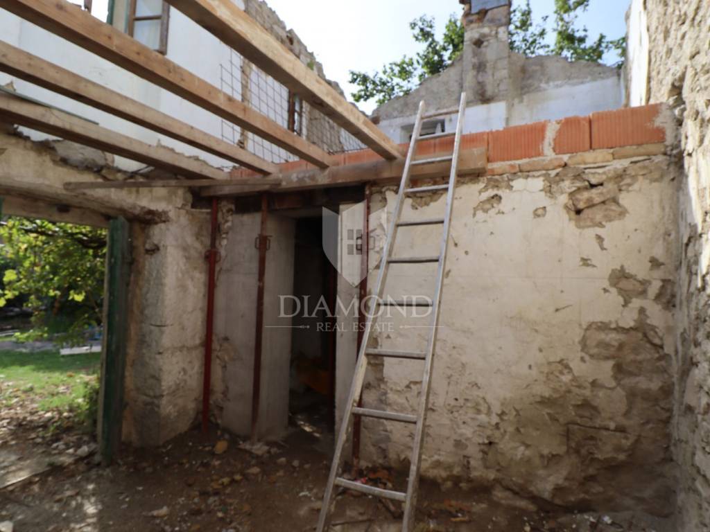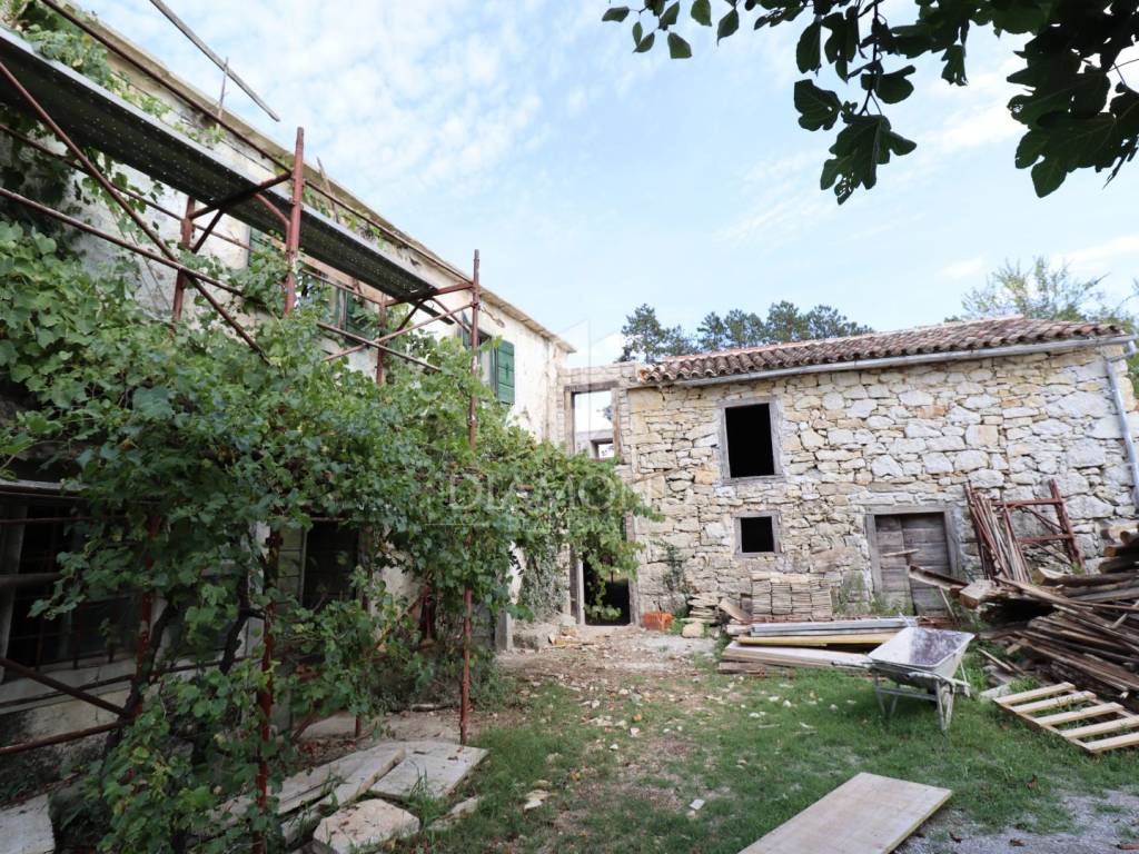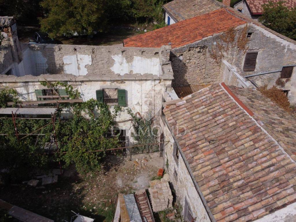 Nel centro dell'Istria verde, circondata dalla natura incontaminata, si trova questa casa in pietra d'Istria la cui ristrutturazione è iniziata. Si trova all'estremità di un dolce villaggio, circondato da numerosi vicini. È facilmente raggiungibile a soli 10 minuti di guida facile da Pinguente e Lupoglav. Grazie alla sua microubicazione molto interessante, all'importanza storica e culturale di Rozzo, alle bellezze naturali e ai numerosi sentieri escursionistici, questa proprietà rappresenta un'opportunità ideale per tornare alla natura, sia per una vacanza di fine settimana che per una vita tranquilla.