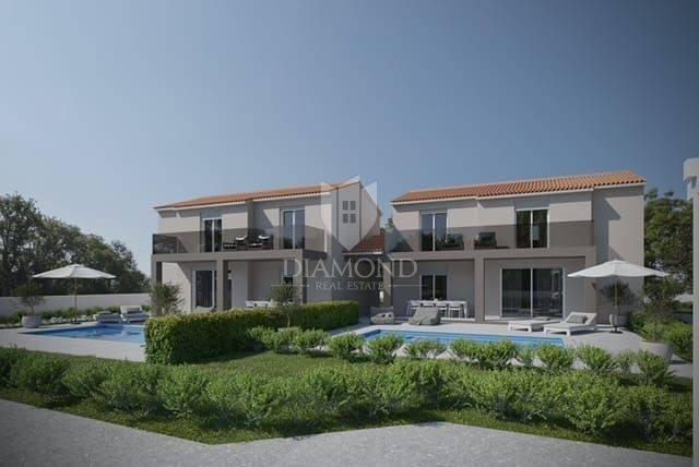 In vendita è una bellissima casa familiare situata a 4 km da Parenzo, ideale per chi cerca comfort e vicinanza alla natura. La casa si sviluppa su due piani. Al piano terra si trova un disimpegno che conduce ad un comodo open concept space composto da una cucina con sala da pranzo e un soggiorno. Al piano terra c'è anche una camera da letto, un bagno, un WC per gli ospiti e una terrazza per rilassarsi in un bellissimo giardino paesaggistico con piscina. Al piano superiore ci sono due ampie camere da letto, ciascuna con il proprio bagno e accesso al terrazzo. Un ulteriore disimpegno e un ripostiglio garantiscono ulteriore spazio e praticità. Tutta la casa è dotata di riscaldamento a pavimento e aria condizionata per un comfort ottimale durante tutto l'anno. Nel giardino è presente una piscina di 20 mq con zona solarium, oltre a due posti auto.
