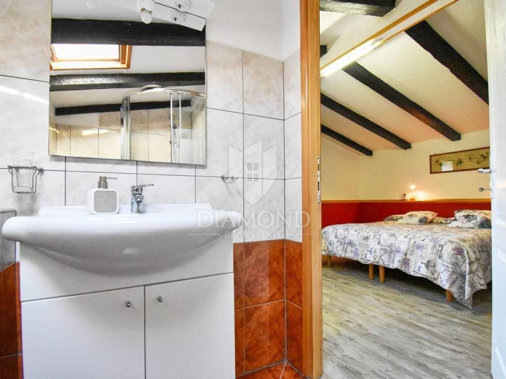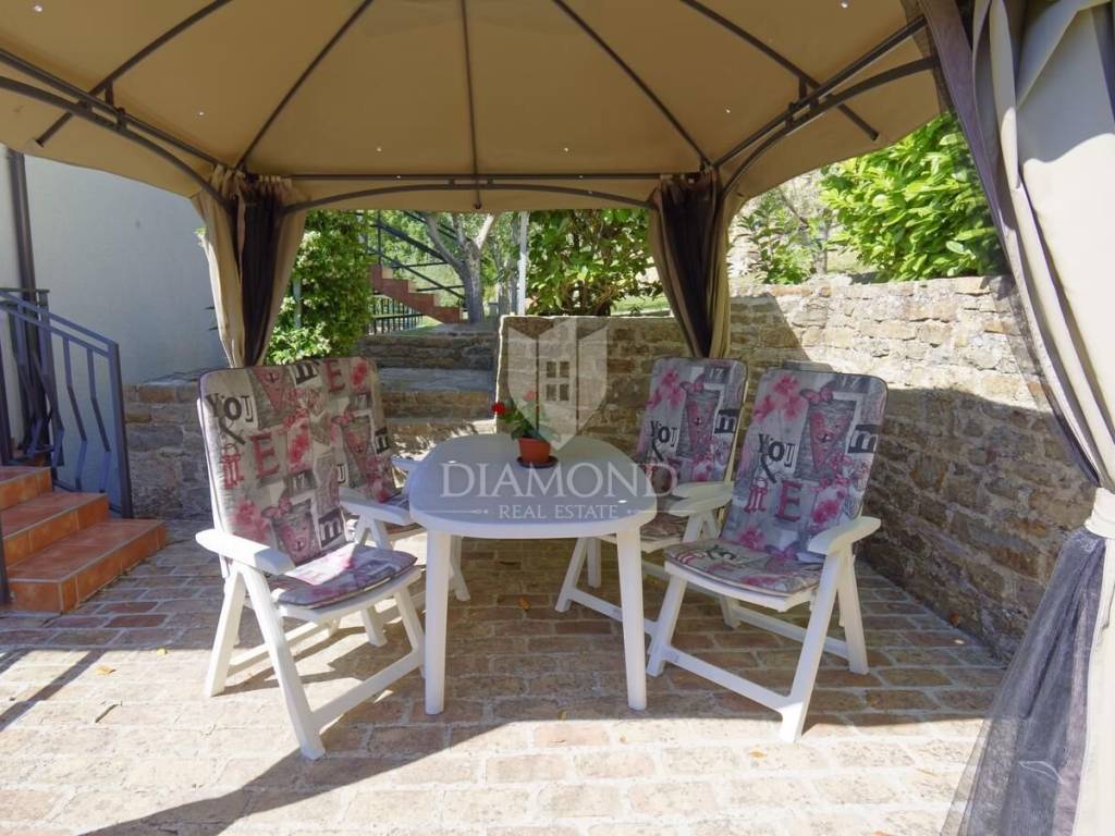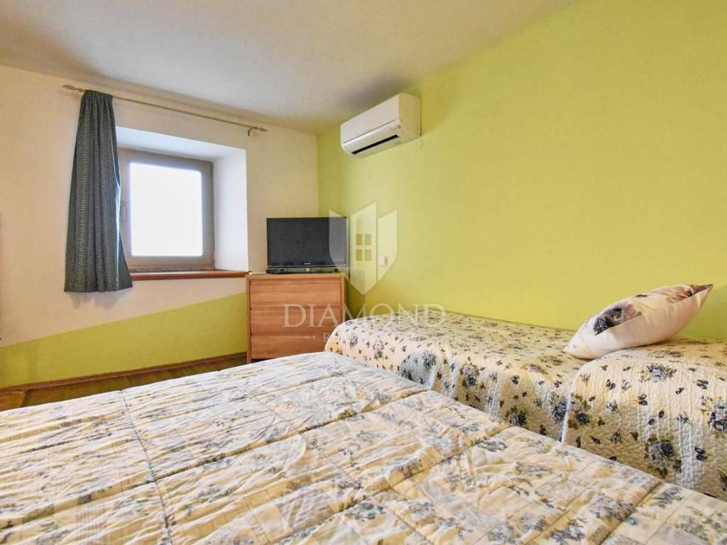 Casa in vendita in un'ottima posizione nella bellissima Grisignana con un ampio cortile. Non lontano dal centro di Grisignana si trova una casa di 180 m2 con 900 m2 di cortile nella proprietà. La casa si sviluppa su quattro piani ed è suddivisa in 4 unità abitative. In totale ci sono 5 camere da letto, 4 soggiorni, 4 bagni, 3 ampie terrazze, ognuna situata sull'altro lato della casa. Ogni unità abitativa ha il proprio ingresso, il che significa che la casa può essere affittata insieme o singolarmente. Nel cortile ben curato ci sono molti alberi da frutto e altre piante mediterranee e c'è abbastanza spazio per fare una piscina. Dal cortile c'è una bellissima vista sul mare aperto. La città degli artisti Grisignana è a pochi minuti a piedi dalla casa.