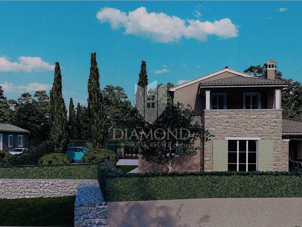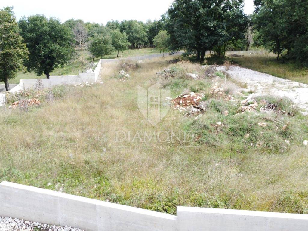 Nei dintorni di Sv. Lovreč, in una posizione tranquilla immersa nel verde, è in vendita un terreno di 841 m² con permesso di costruzione e progetto approvato per la realizzazione di una moderna villa con piscina.