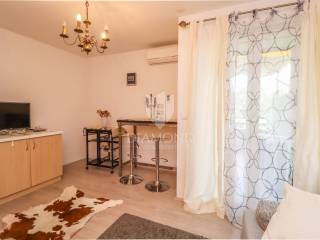 L'appartamento si trova al 1° piano di un piccolo edificio residenziale. La superficie dell'appartamento è di 36,95 m2 ed è composta da un soggiorno con cucina e sala da pranzo, una camera da letto, un bagno, un corridoio e 2 balconi. Un balcone è aperto ed orientato a nord, e offre una vista aperta sul verde giardino, mentre l'altro è coperto ed orientato ad est. Dal soggiorno si accede ad un ampio balcone di ca. 15 mq, dal quale si gode una vista sull'ambiente tranquillo e curato. L'appartamento è riscaldato e raffrescato con un condizionatore. L'appartamento è stato ristrutturato con competenza nel 2022, quindi non è previsto alcun investimento. C'è un parcheggio accanto all'edificio ad uso di tutti i proprietari di appartamenti.