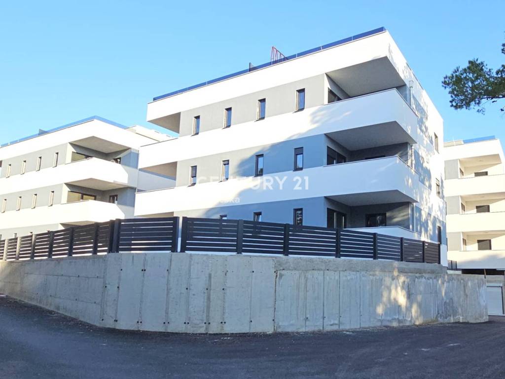 Pakoštane, appartamento di due locali e mezzo con terrazza coperta e vista mare, a 70 m dalla spiaggia. L’appartamento ha una superficie di 70 m2 ed è composto da ingresso, bagno, due camere da letto e soggiorno con cucina e sala da pranzo e una piccola terrazza coperta. Guarda la piantina nella galleria. L’appartamento è climatizzato, sono stati installati i migliori pavimenti, infissi in PVC con tapparelle motorizzate e zanzariere. Nel bagno è presente il riscaldamento a pavimento. L’acquirente non paga la tassa sulle transazioni immobiliari.
