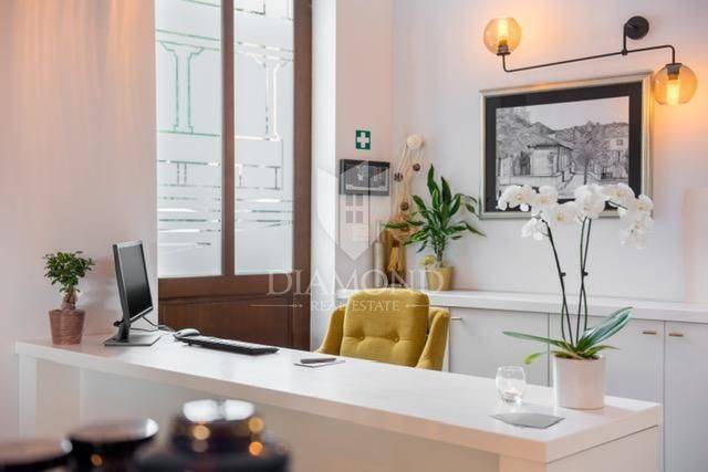 Labin si trova nel centro della costa orientale dell'Istria, a soli tre chilometri dal mare ea cinque chilometri da Rabac, una famosa località estiva. Il centro storico di Labin, situato in cima a una collina alta 320 metri. È ricca di arte e monumenti storici. Questa struttura si trova nel centro storico di Labin, sulla piazza principale, a 30 metri dal centro cittadino. Ottone, marmo e quercia sono i tratti distintivi di questa proprietà. La struttura dispone di otto camere, ciascuna con il proprio bagno. Al piano terra si trova un atrio d'ingresso con reception, lounge bar, servizi igienici (maschili e femminili), ristorante e cucina. Le due terrazze posteriori offrono una vista intatta sul mare Adriatico. Al piano interrato cucina, bagno e guardaroba per i dipendenti, ufficio e 65 mq di ripostiglio. In cantina c'è una cantina. Originariamente costruito nel 1800, questo bellissimo edificio è stato recentemente ristrutturato, trasformando questa tenuta storica in una nuova opera d'arte moderna. Design accurato con grande attenzione ai dettagli. La caratteristica migliore di questa struttura è sicuramente la splendida vista sulla vallata e sul mare. Attualmente le sale possono ospitare 20 persone, posti interni 40 persone, terrazza posteriore esterna 40 persone. Questa pittoresca cittadina offre più di quanto si possa immaginare, è un luogo ideale per chi vuole investire in una proprietà di qualità.