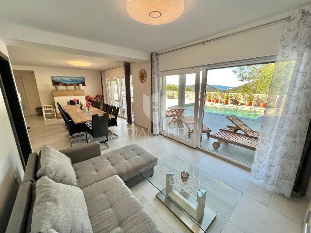 In una moderna casa costruita nel 2023 in una zona tranquilla di Bribir si trovano in totale cinque appartamenti, quattro dei quali sono in vendita. La casa dispone di parcheggi su entrambi i lati della proprietà, garantendo spazio sufficiente per residenti e ospiti. Sul terreno di circa 700 m² si trovano una piscina con un’ampia terrazza solarium e una cucina esterna con grande tavolo – luogo ideale per il relax e la convivialità.
