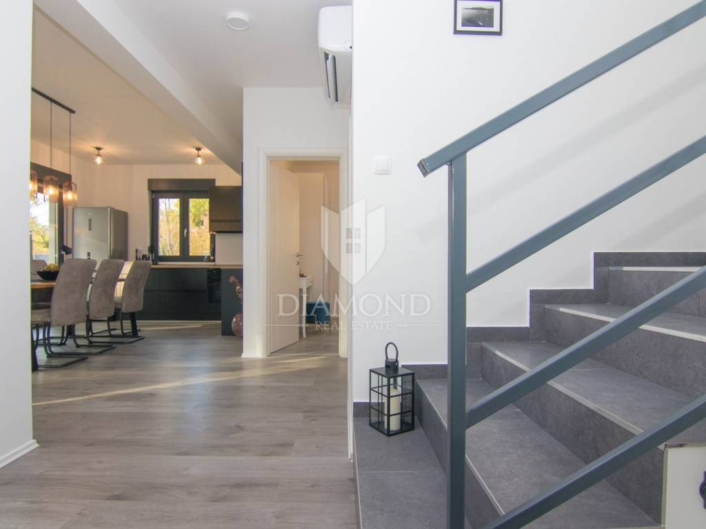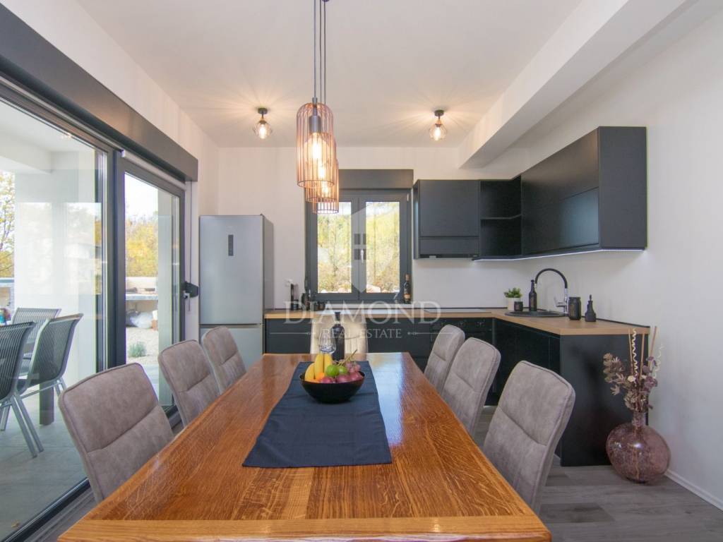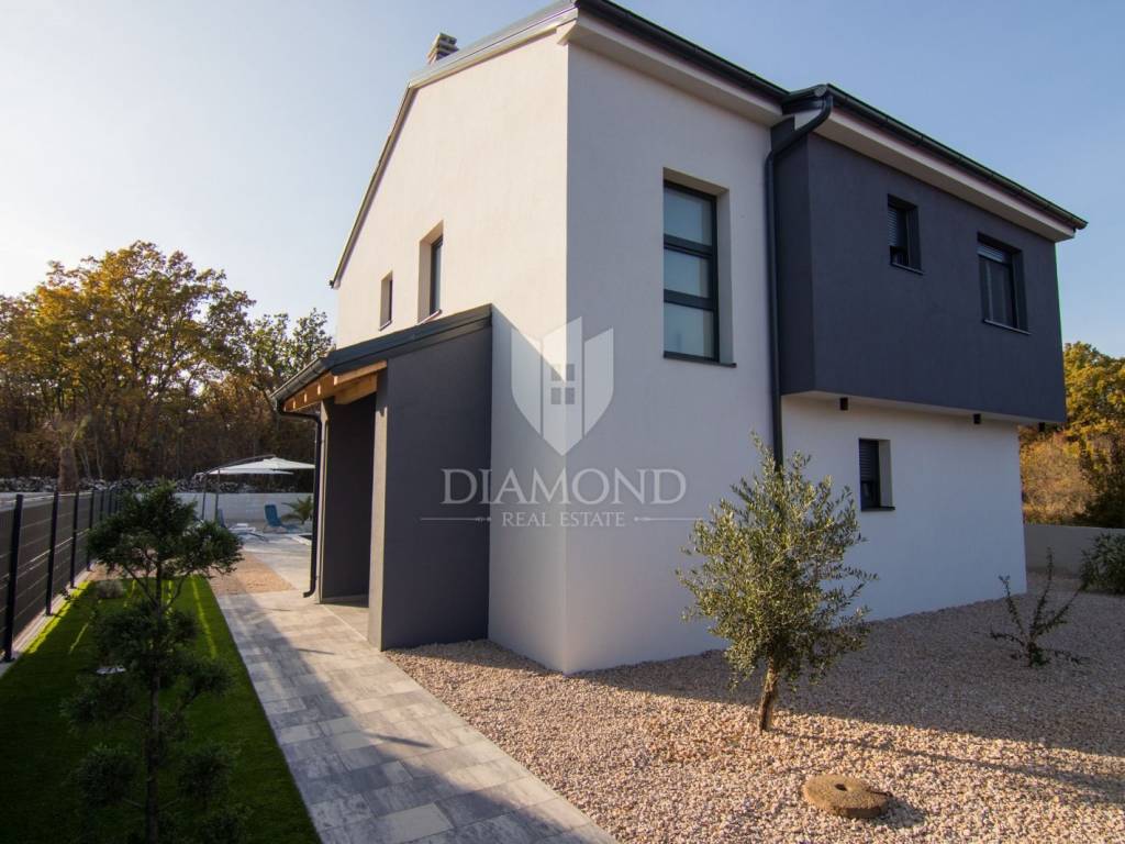 In vendita una moderna casa con piscina situata in un ambiente tranquillo e naturale nella parte centrale dell'isola di Veglia, ideale per chi cerca una combinazione di privacy, comfort e vicinanza al mare. Questa nuova casa offre un elevato standard abitativo e si distingue per un giardino curato e progettato con cura che permette di godere dell'atmosfera mediterranea durante tutto l'anno. Sebbene situata nell'entroterra dell'isola, la posizione è ottimamente collegata alle città costiere come Šilo, il che rende questa casa con piscina attraente sia per l'abitazione che per l'investimento turistico sull'isola di Veglia.