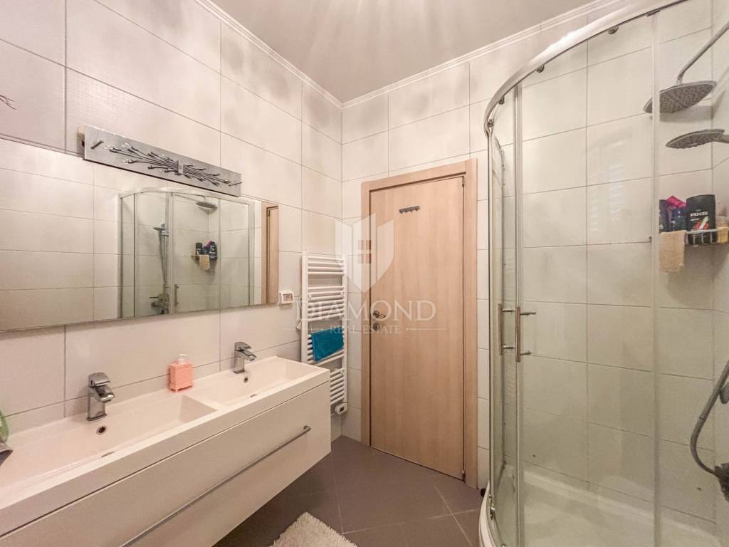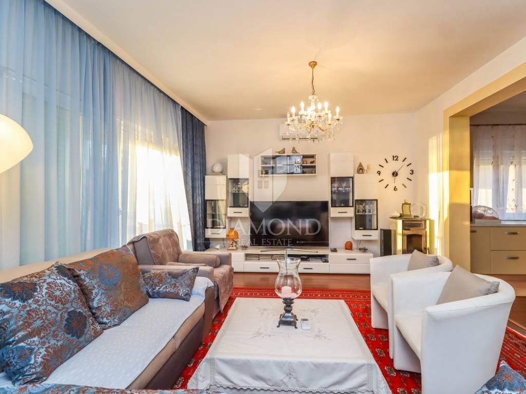 Questa proprietà offre la perfetta combinazione di comfort, funzionalità e una spettacolare vista sul mare. L'appartamento è composto da tre camere da letto, una delle quali ha un balcone con vista diretta sul mare, mentre il soggiorno offre accesso a un'ampia e soleggiata terrazza, ideale per godersi i tramonti e le calde serate estive. Il soggiorno open space con cucina crea uno spazio arioso e piacevole, pieno di luce naturale. L'appartamento è dotato di aria condizionata e inoltre di una stufa a pellet nel soggiorno, che garantisce comfort durante tutto l'anno.