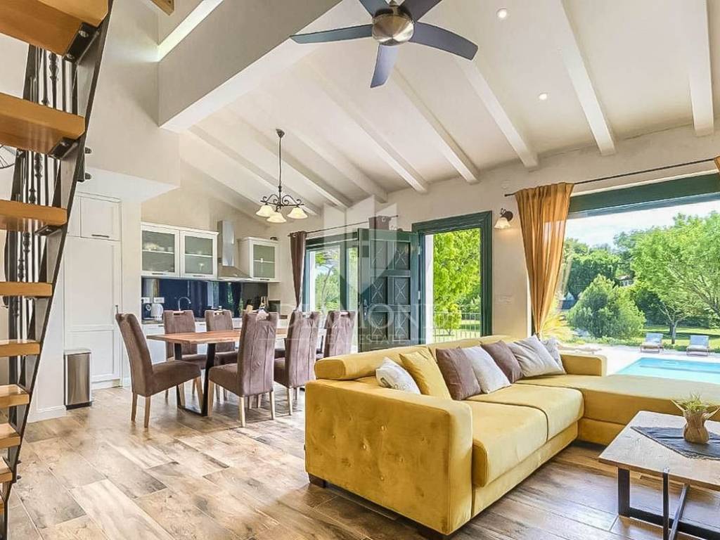 La casa principale è stata costruita come un piano terra con una soffitta alta, e nei suoi 200 m2 di superficie abitabile offre un soggiorno con cucina e zona pranzo, due camere da letto con bagno e una toilette separata. Un'atmosfera speciale per questa casa è data dalla galleria, che offre una vista dell'intera casa e parte della terrazza con piscina. Accanto alla casa principale c'è un'altra casa più piccola con soggiorno, camera da letto e bagno, e tra le due case è stata allestita una zona grill/salotto. Le case si affacciano sulla bellissima piscina, che si trova tra il verde del giardino. Il giardino è grande, spazioso, situato su 3000 m2, con molti frutti e olive, tipico di questa parte dell'Istria.
