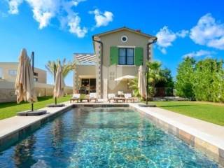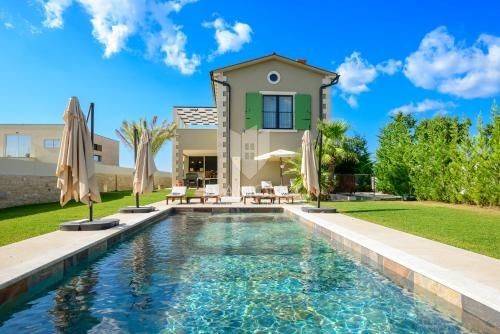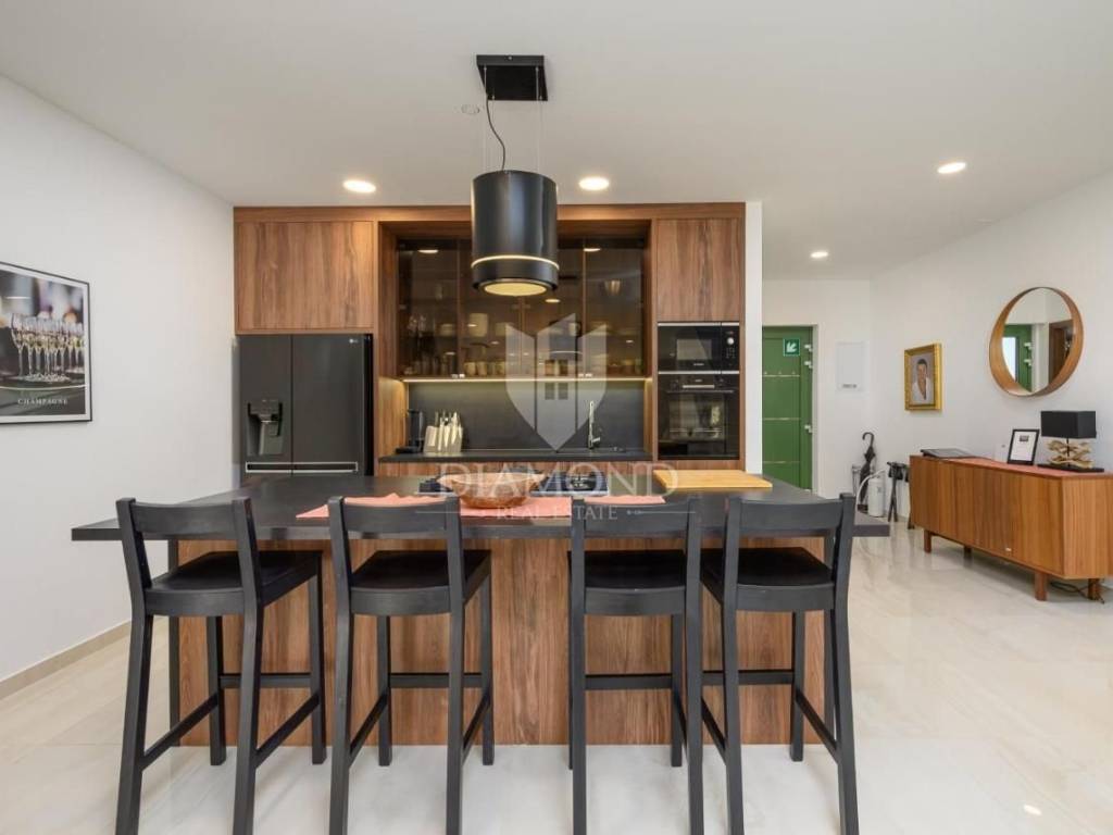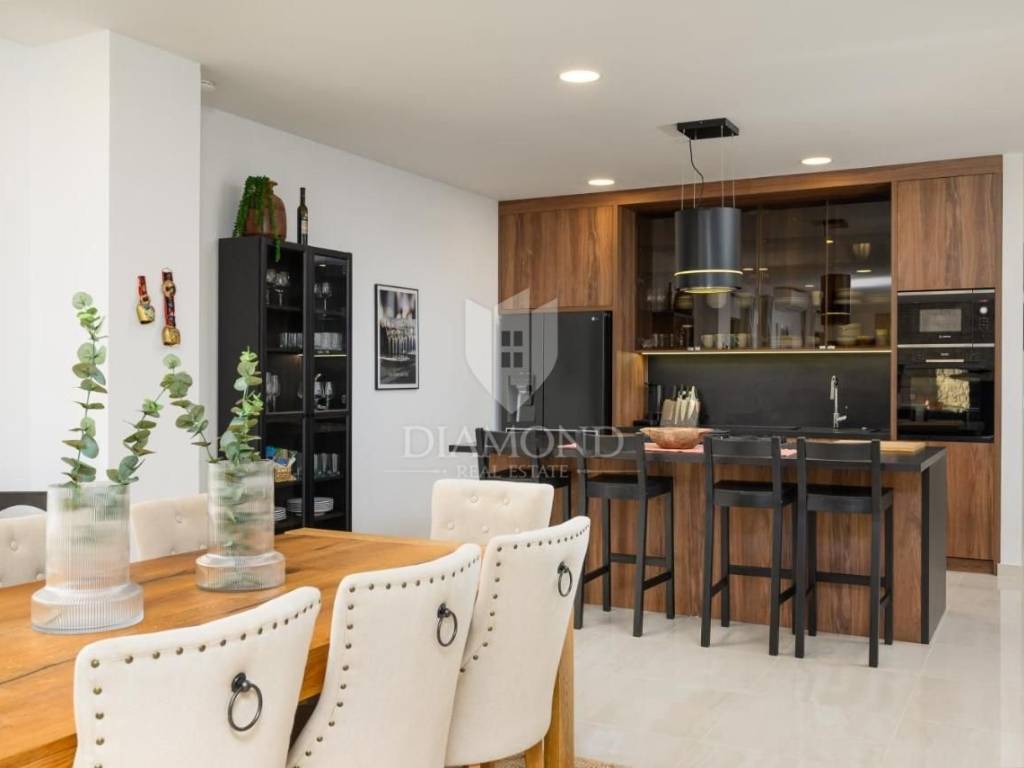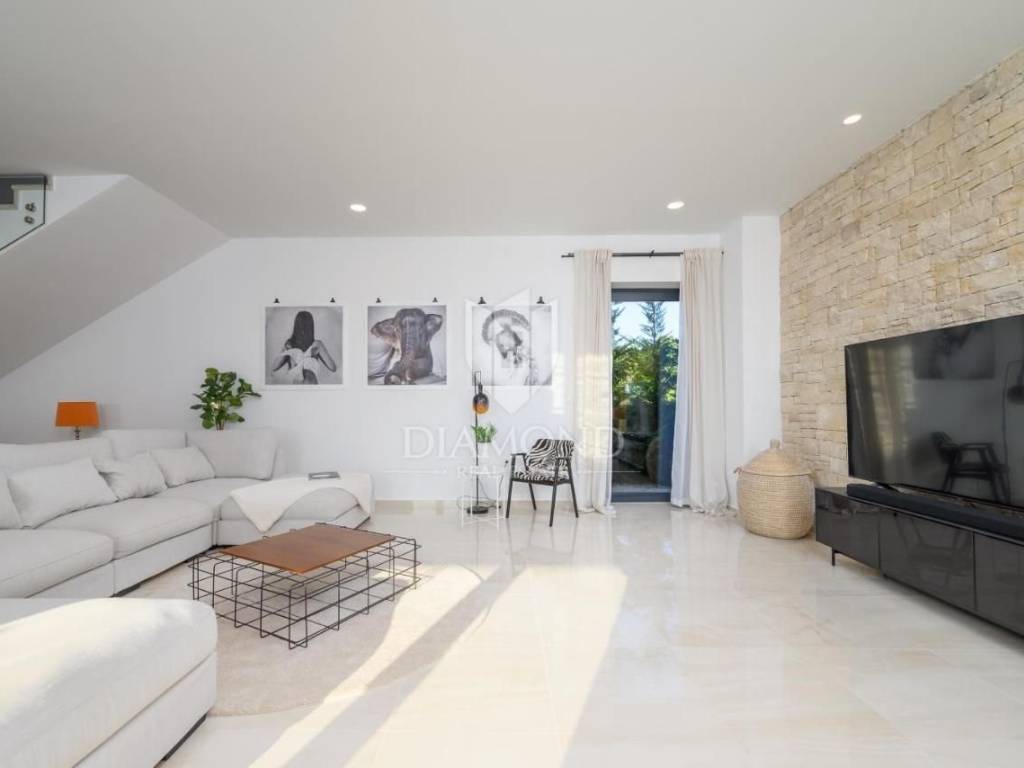 Realizzata con grande attenzione ai dettagli, i proprietari hanno utilizzato solo materiali di prima qualità, poiché la villa era originariamente destinata ad uso privato. Ogni elemento è stato studiato nei minimi dettagli, dagli eleganti interni alla distribuzione funzionale degli spazi, che garantisce massimo comfort e lusso. La villa si estende su 300 m² e dispone di un ampio soggiorno open space con cucina di 90 m², inondato di luce naturale grazie alle grandi vetrate. Dal soggiorno si accede a una terrazza coperta di 25 m², ideale per cene all'aperto o momenti di relax con vista sulla natura circostante. Al piano terra si trova anche un'elegante sala lounge con accesso diretto alla piscina riscaldata e all'area solarium, perfetta per rilassarsi nell’atmosfera mediterranea.