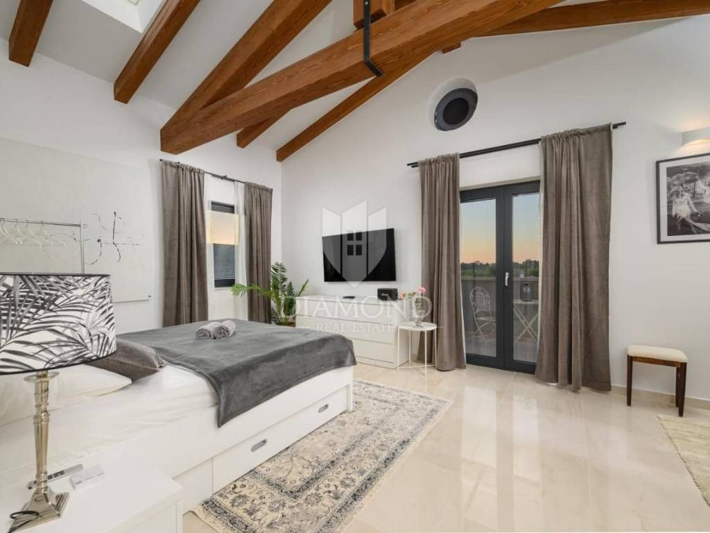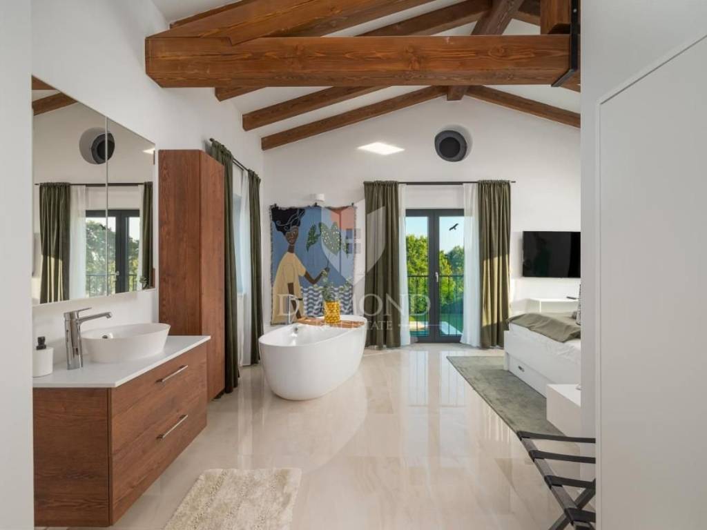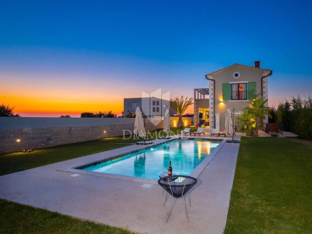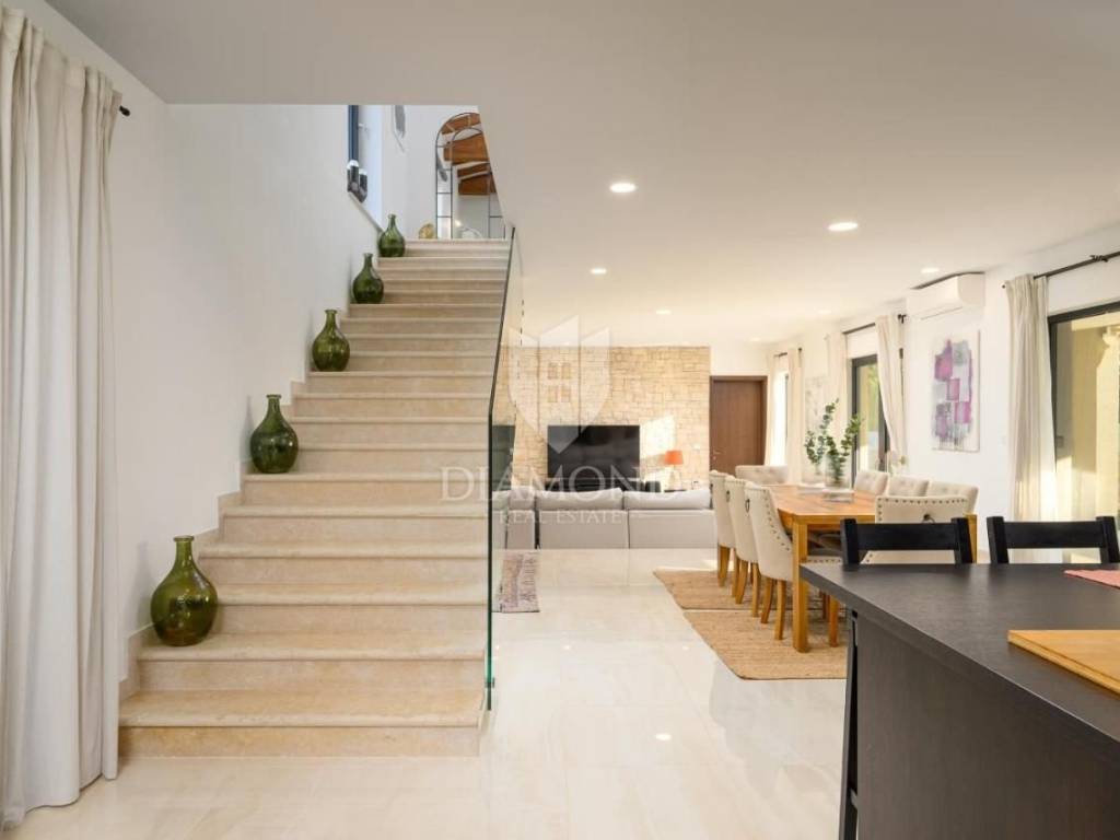 Immersa nell’incantevole paesaggio istriano, nella pittoresca località di Kanfanar, questa lussuosa villa offre privacy, tranquillità e comfort di altissimo livello. Situata in una posizione ideale, a meno di 20 minuti dalle più belle spiagge della regione e dal cristallino Mare Adriatico, rappresenta un perfetto equilibrio tra riservatezza e vicinanza alle principali attrazioni.