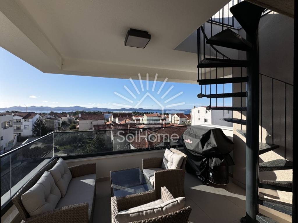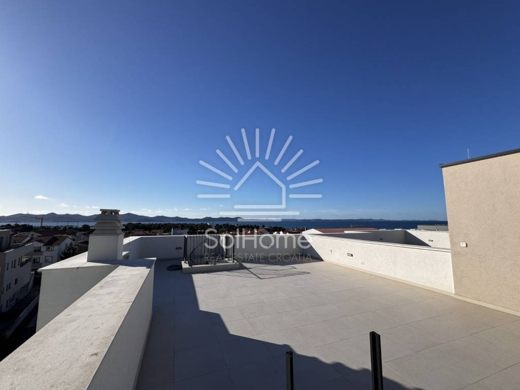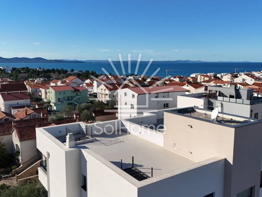 Bellissimo attico in un nuovo edificio con terrazza sul tetto e vista mozzafiato sul mare a Zara - Diklo.