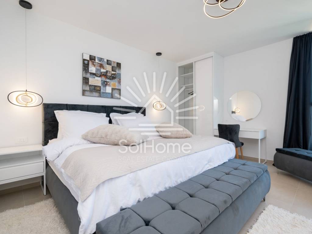 Costruita nel 2022, la villa è composta da piano terra, primo piano e un'impressionante terrazza sul tetto. È completamente arredata e decorata con grande attenzione ai dettagli, e incanta per la privacy e il design moderno.