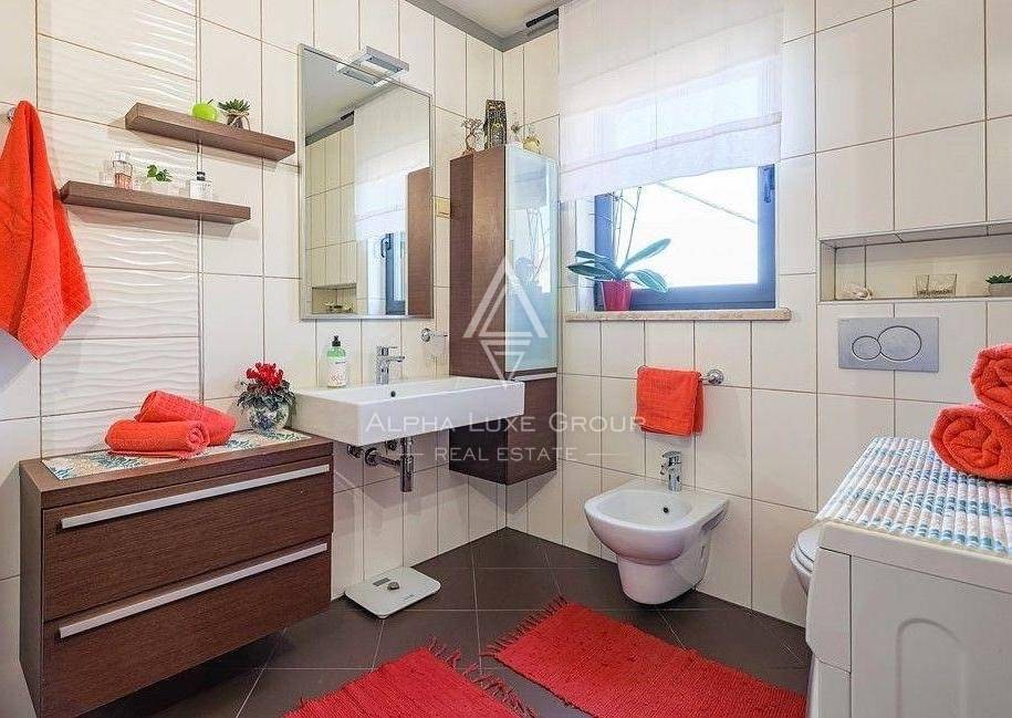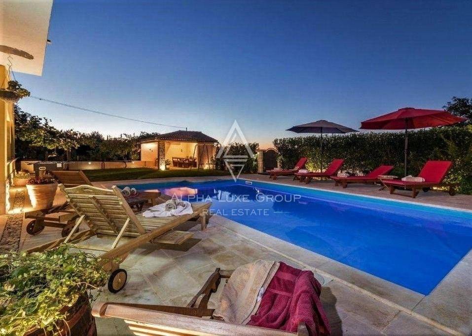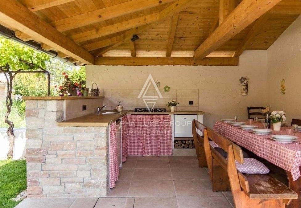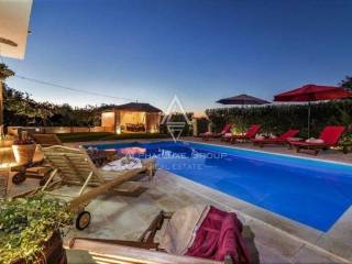 Adiacente all'abitazione si trova una piscina di 42 mq, che vanta un solarium, una cucina estiva chiusa e un'area per il gioco dei bambini. Lo spazio esterno è stato progettato con paesaggistica e recinzione.