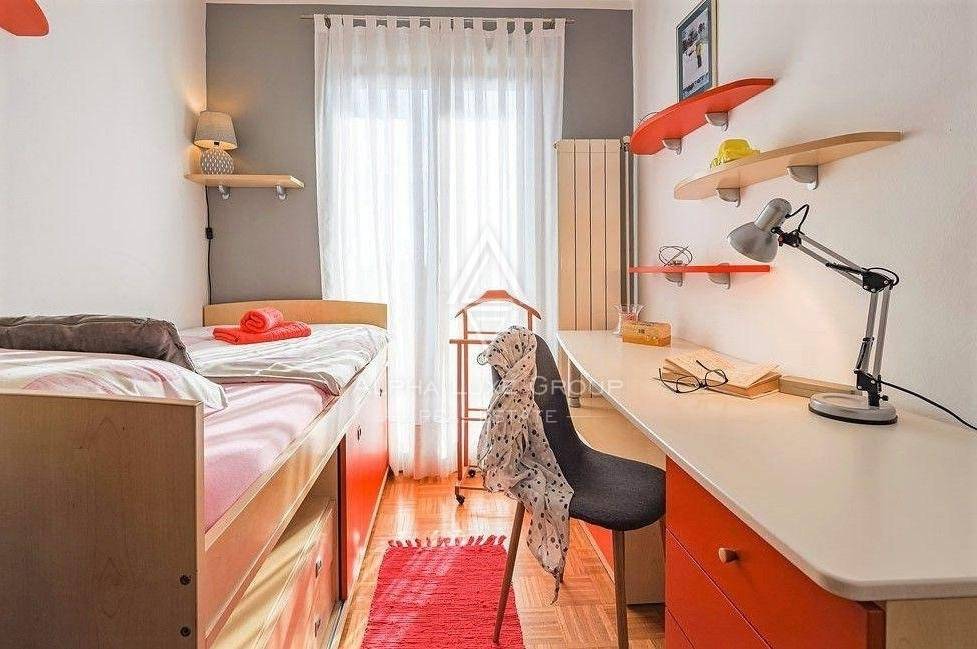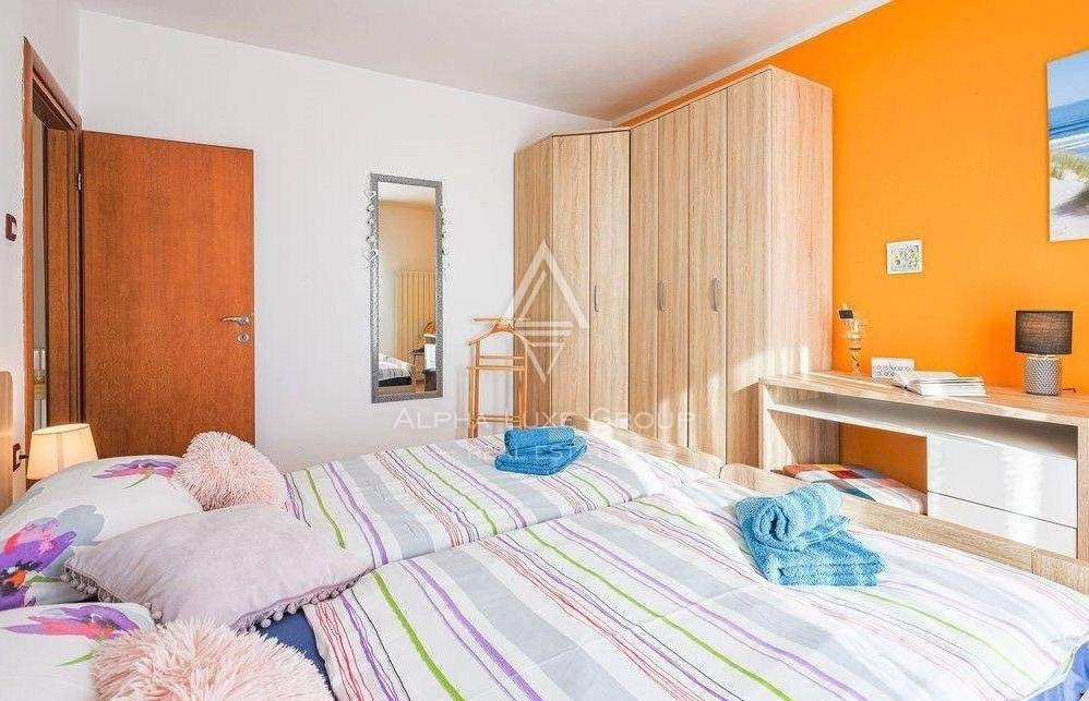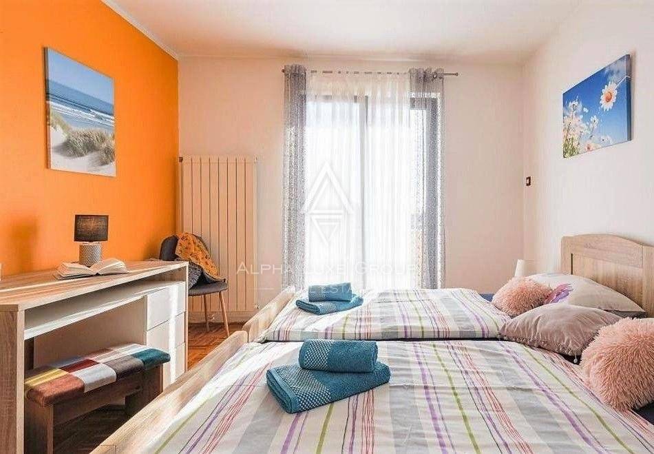 Al primo piano, questo appartamento si estende su 123 m² e comprende un soggiorno, sala da pranzo, cucina, tre camere da letto, due bagni e una terrazza coperta.