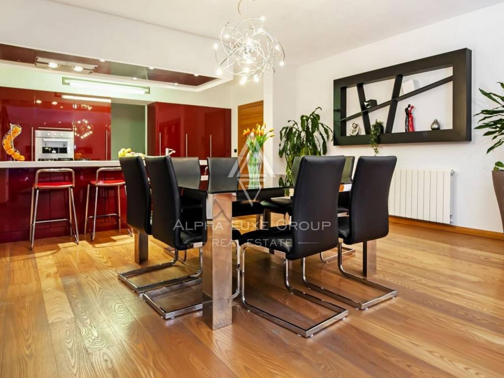 Al piano terra si trova un appartamento con cucina "open space" con sala da pranzo, soggiorno, camera da letto e bagno. C'è anche un pub con grandi tavoli e caminetto con accesso diretto alla piscina.