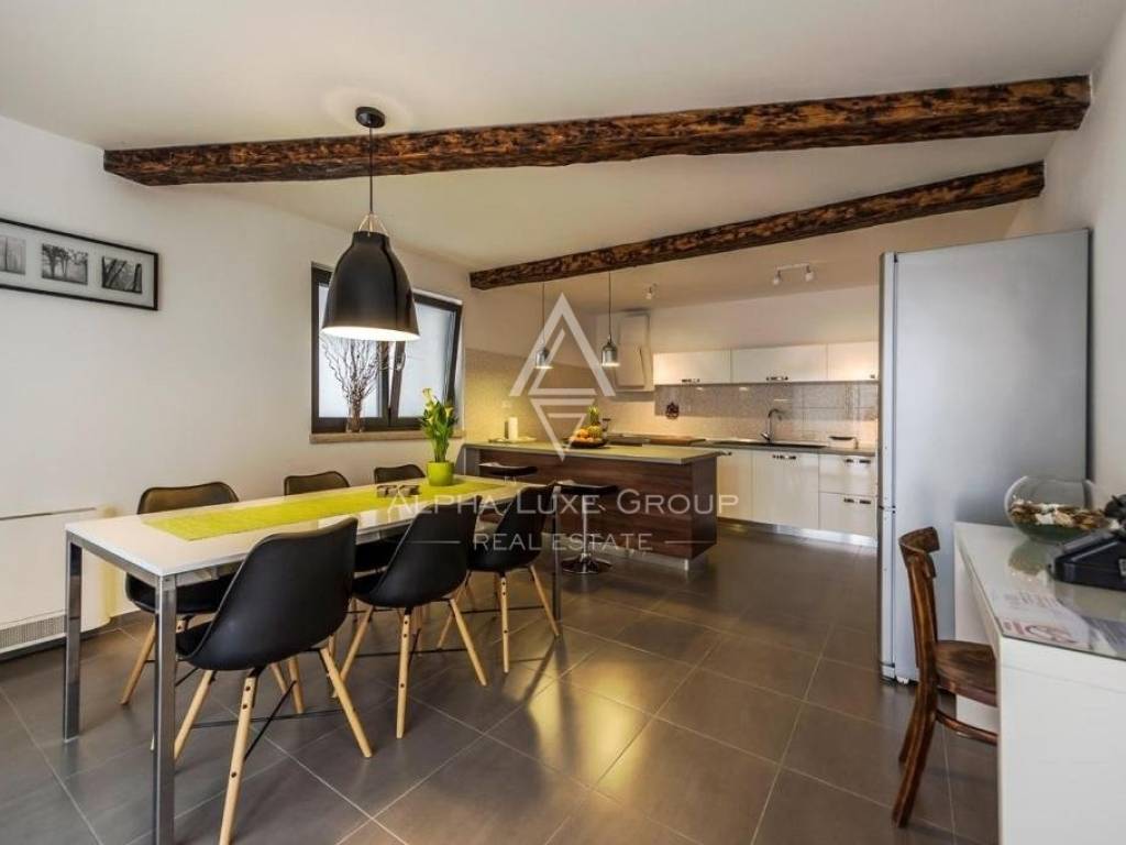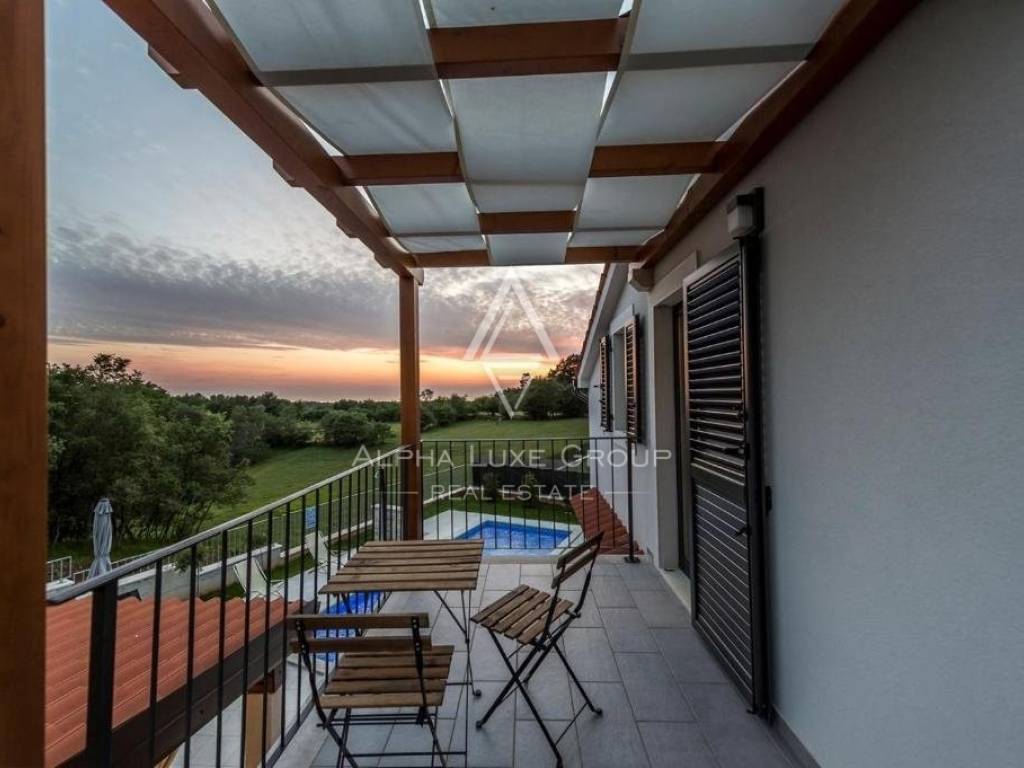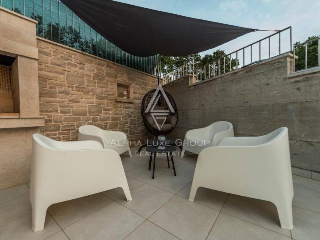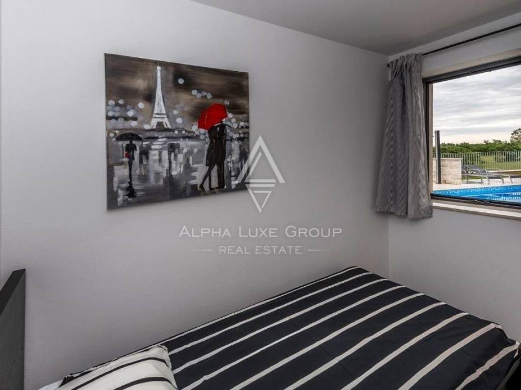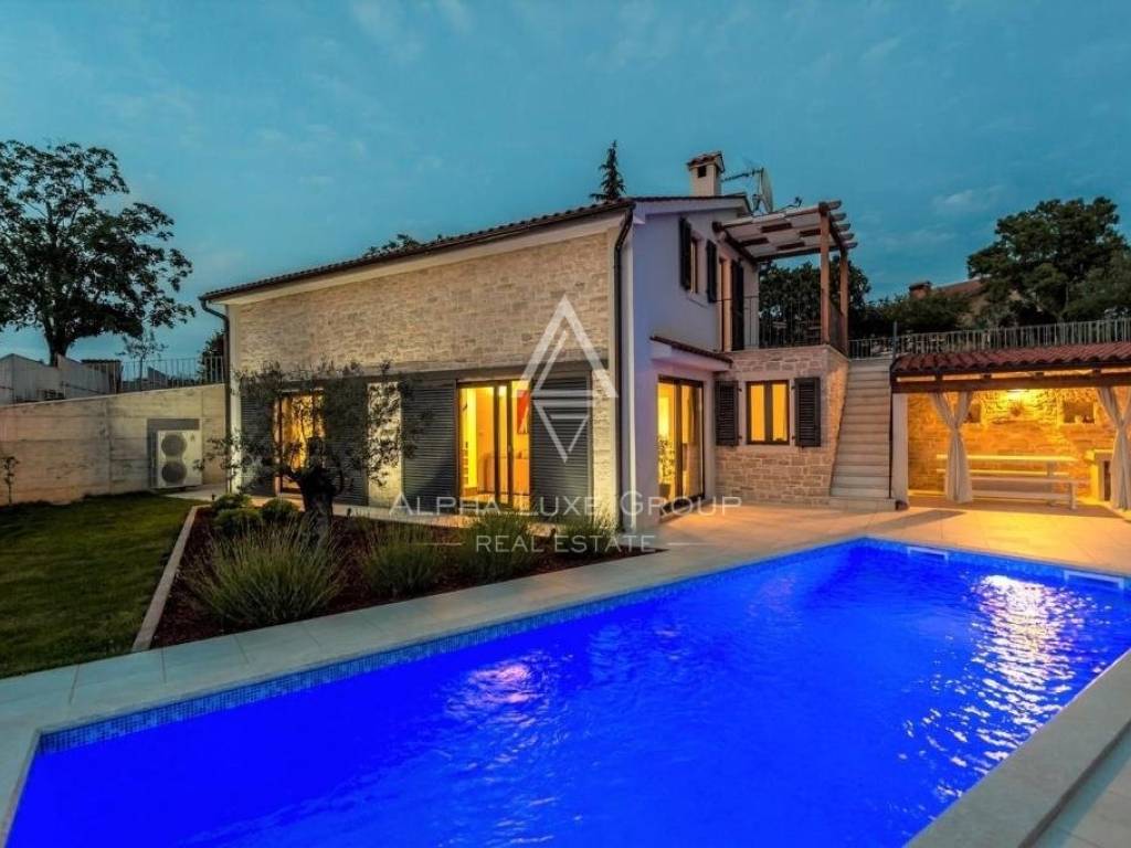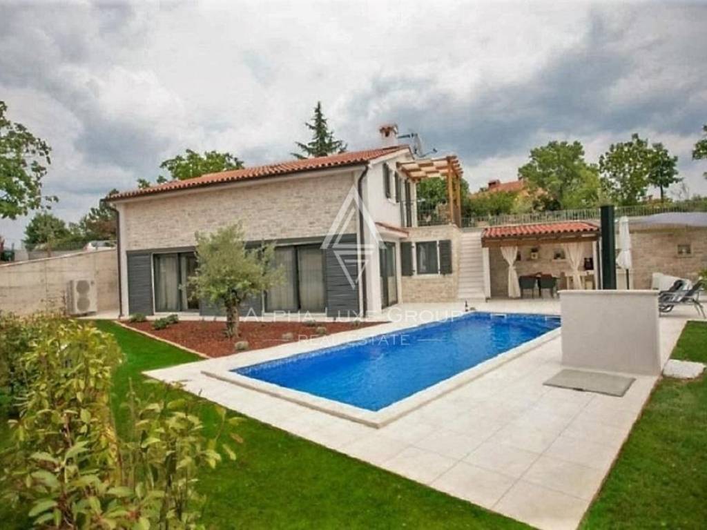 A soli 3 chilometri da Tinjan, si trova questa splendida casa indipendente costruita nel 2015, che offre uno stile di vita sereno o un'eccellente opportunità di investimento turistico. La villa, di 145 m2, dispone di un ampio soggiorno con un accogliente camino, una cucina all'avanguardia, una zona pranzo, una camera da letto e un bagno al piano terra. Al primo piano ci sono due camere da letto, ciascuna con bagno privato, e un'ampia terrazza con una vista mozzafiato sul mare.