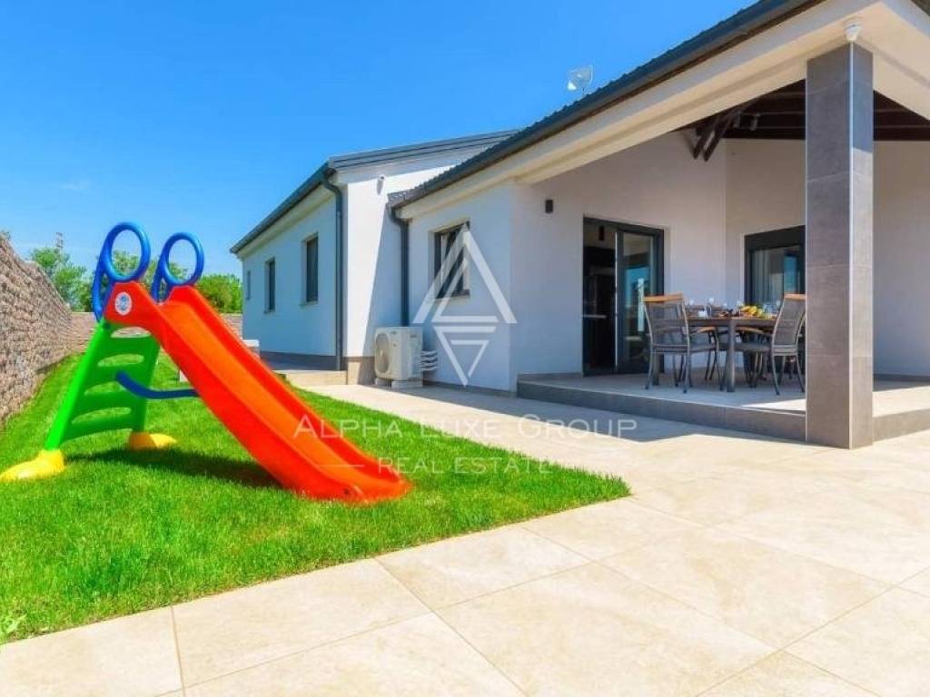 Questa villa contemporanea su un unico livello si trova nella tranquilla periferia di Šikići, a soli 3 km dal vivace centro di Pola e dalle sue splendide spiagge. Costruita con un design di lusso, la villa offre 559 m² di terreno privato completamente recintato con parcheggio ampio per un massimo di sei veicoli. L'area esterna è arricchita da una piscina di 28 m², una doccia all’aperto, un grande barbecue e una terrazza coperta, ideale per cene all’aperto. All'interno, la villa dispone di un luminoso soggiorno, una cucina open space con zona pranzo, tre camere da letto spaziose e tre bagni con riscaldamento a pavimento. Tutte le stanze sono dotate di aria condizionata per il massimo comfort tutto l'anno, e la proprietà vanta una certificazione energetica A+, rendendola una scelta sia efficiente che confortevole.