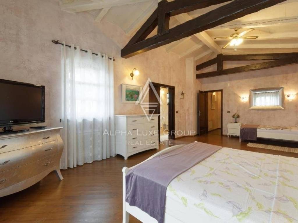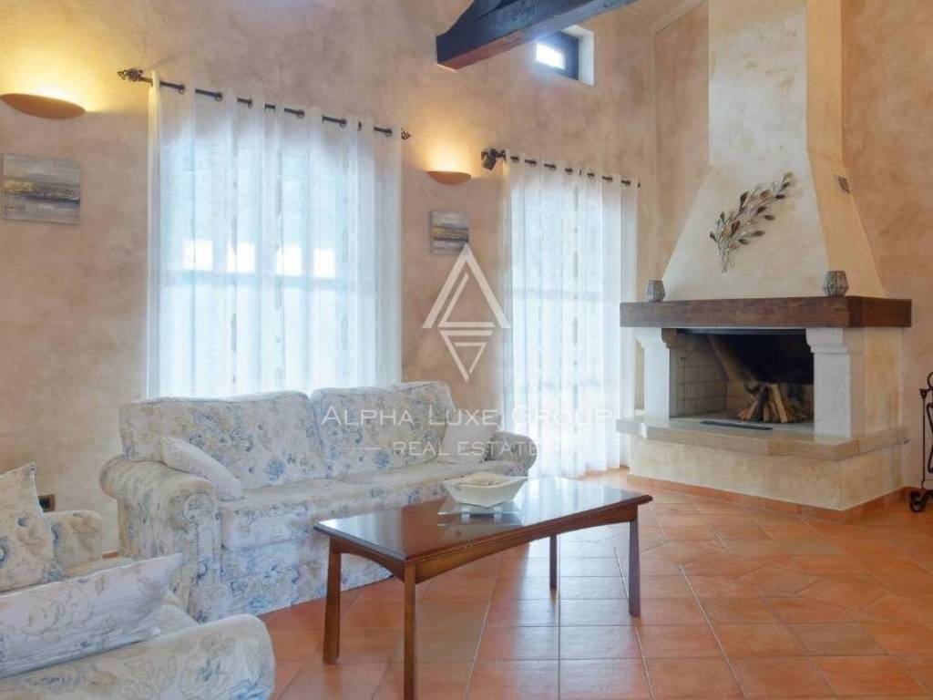 L’area esterna dispone di una piscina di 65 m² con zona solarium, area pranzo all’aperto e un curato prato verde. Al primo piano si trovano due grandi camere da letto con bagno privato, ognuna con terrazza privata e vista mozzafiato sulla natura circostante e sul mare Adriatico. La villa è riscaldata con riscaldamento a pavimento, convettori a ventola e un camino nel soggiorno.