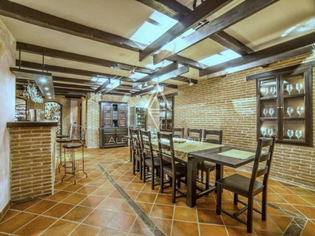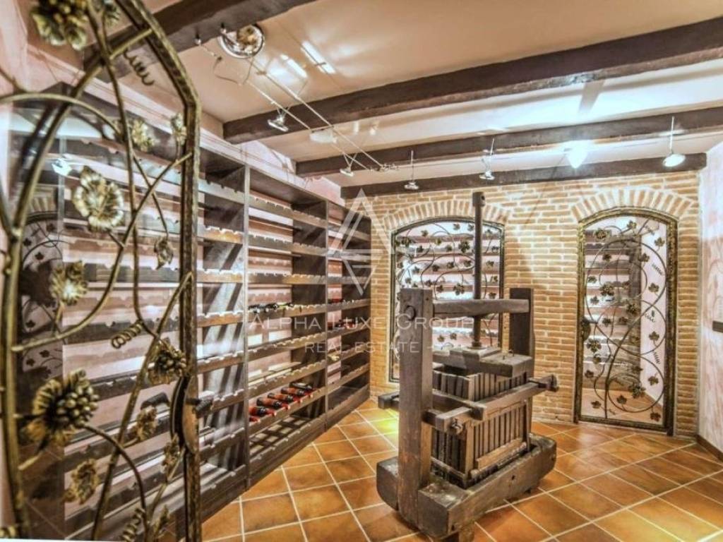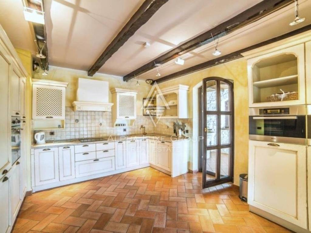 La villa si sviluppa su tre livelli: seminterrato, piano terra e primo piano. Nel seminterrato si trova una taverna climatizzata con cantina e bar. Al piano terra vi sono un ampio soggiorno con camino, una cucina in stile rustico con zona pranzo e accesso diretto alla cucina esterna, alla terrazza e alla piscina. Inoltre, ci sono due camere da letto con bagno privato, di cui una dotata di sauna finlandese.