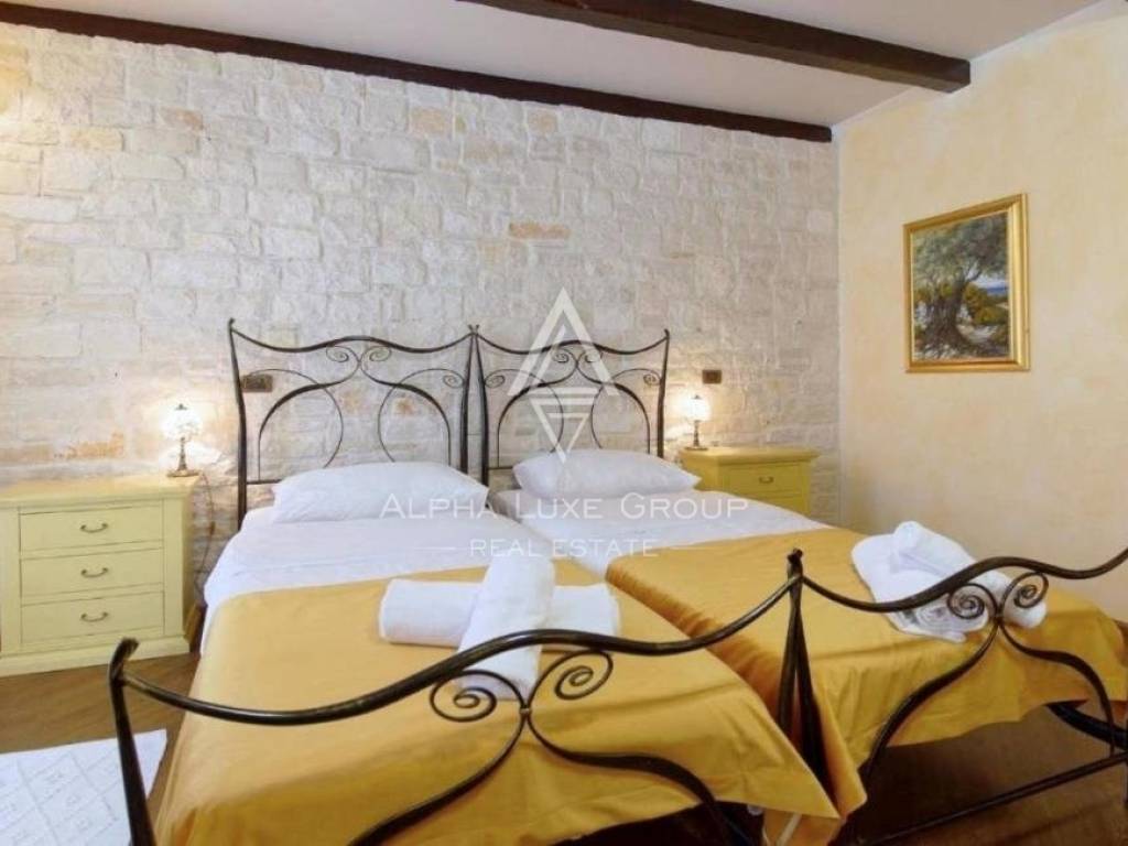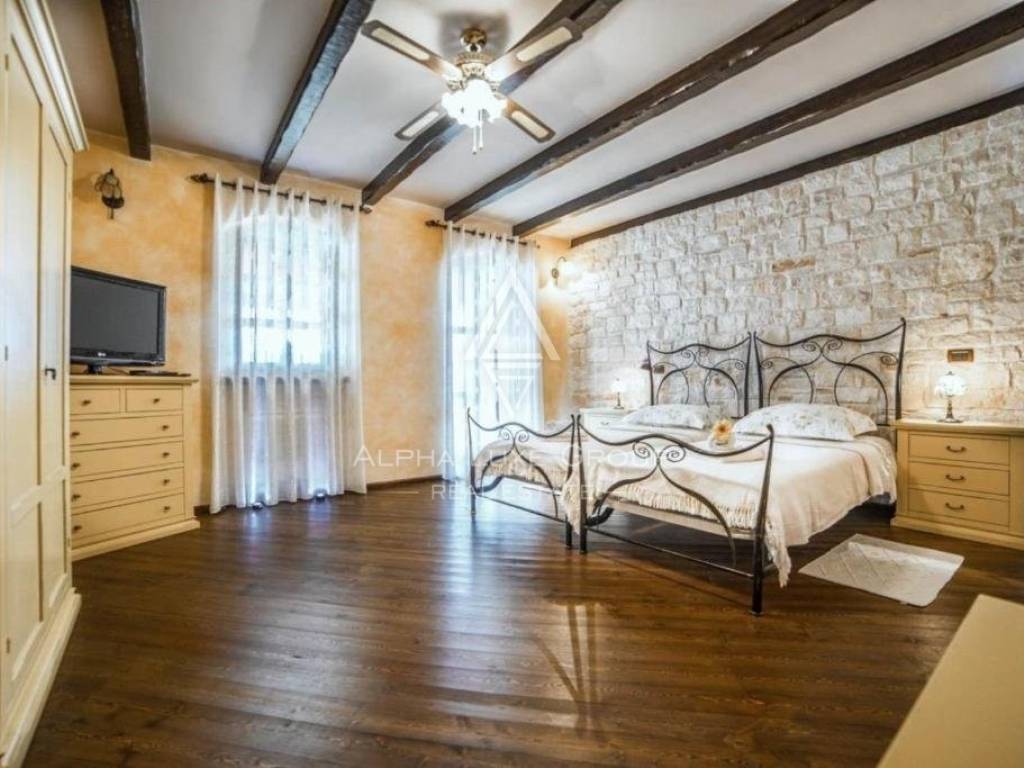 Questa eccezionale villa in pietra, situata a soli 11 km dalla vivace città di Poreč e dalle sue splendide spiagge, unisce il fascino rustico al lusso moderno. Immersa in un terreno di 1.390 m² circondato da ulivi e querce secolari, la proprietà offre privacy e tranquillità in uno scenario pittoresco.