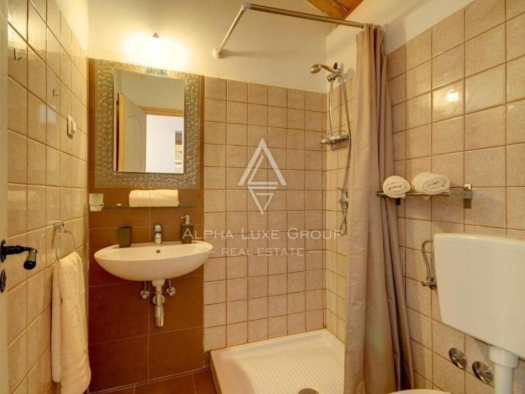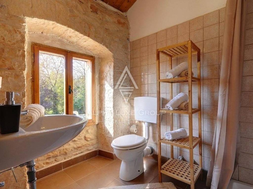 Questa affascinante casa in pietra si estende su una superficie totale di 190 m², progettata con cura su due piani. Al piano terra si trova una spaziosa cucina con bancone per la colazione, una zona pranzo collegata al soggiorno, un bagno moderno e una sala fitness dedicata ad attività ricreative. Al piano superiore ci sono quattro camere da letto, tre delle quali con bagno privato, offrendo comfort e privacy.