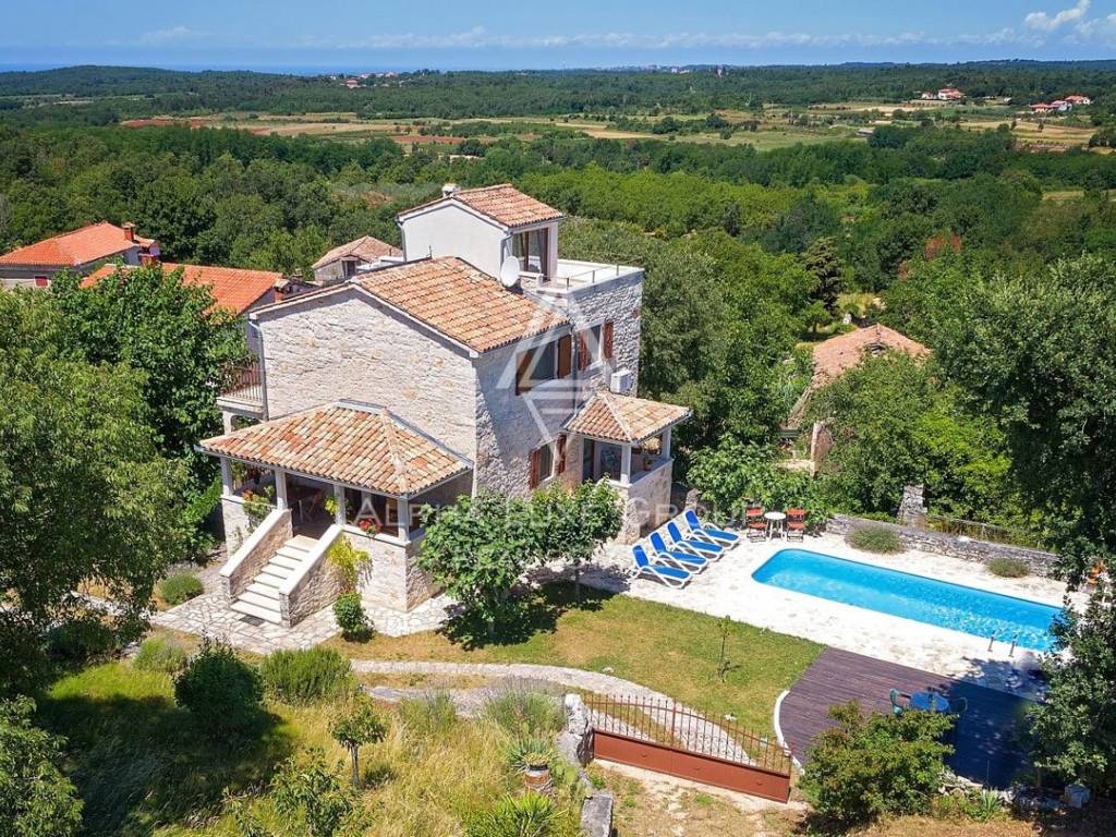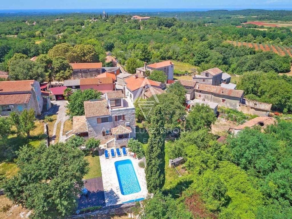 Immersa nel pittoresco cuore dell'Istria, a pochi minuti di auto dalla splendida cittadina costiera di Poreč, questa affascinante casa in pietra ristrutturata combina perfettamente il fascino della tradizione istriana con il comfort moderno. Con una superficie di circa 250 m², la proprietà si trova su un ampio terreno di 960 m², dotato di piscina privata, area solarium e un rigoglioso giardino che garantisce privacy e relax.