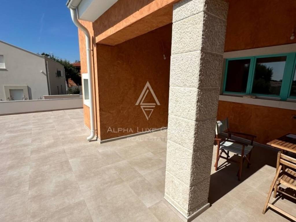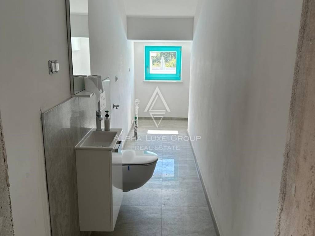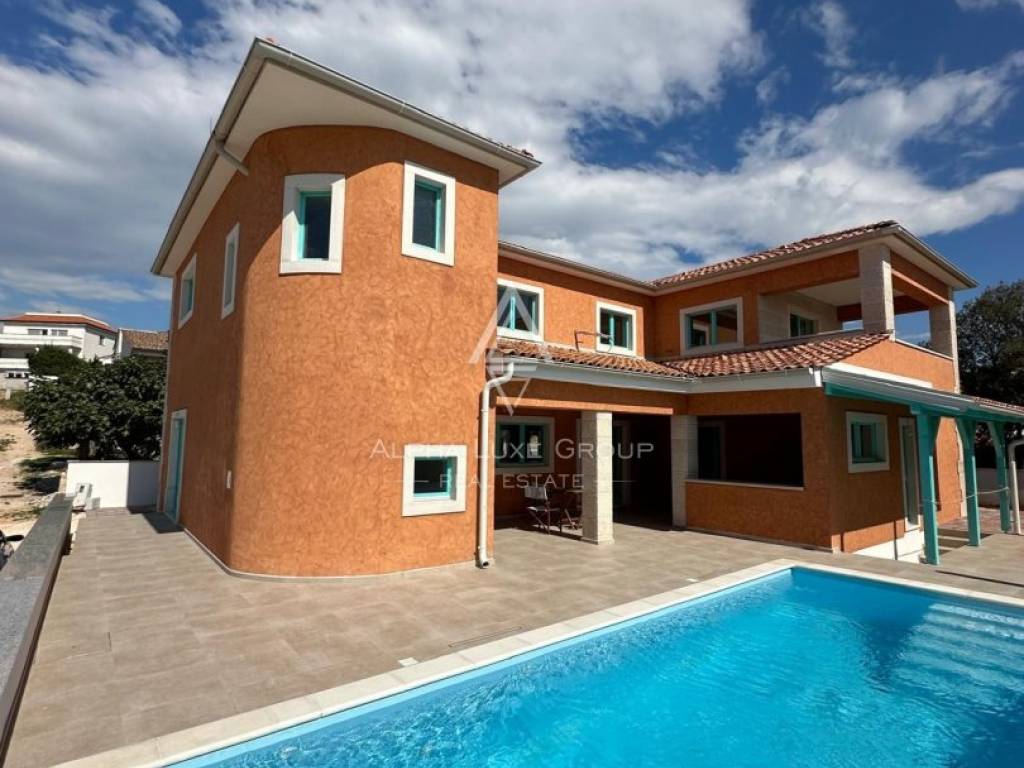 Il soggiorno open space con cucina conduce direttamente a un’ampia terrazza con cucina esterna coperta, piscina privata, doccia all’aperto e area prendisole – perfetta per intrattenere e rilassarsi. La camera padronale ha un balcone con vista mare, mentre nel seminterrato si trovano il locale tecnico della piscina e spazio aggiuntivo per deposito. Inclusi tre posti auto privati.