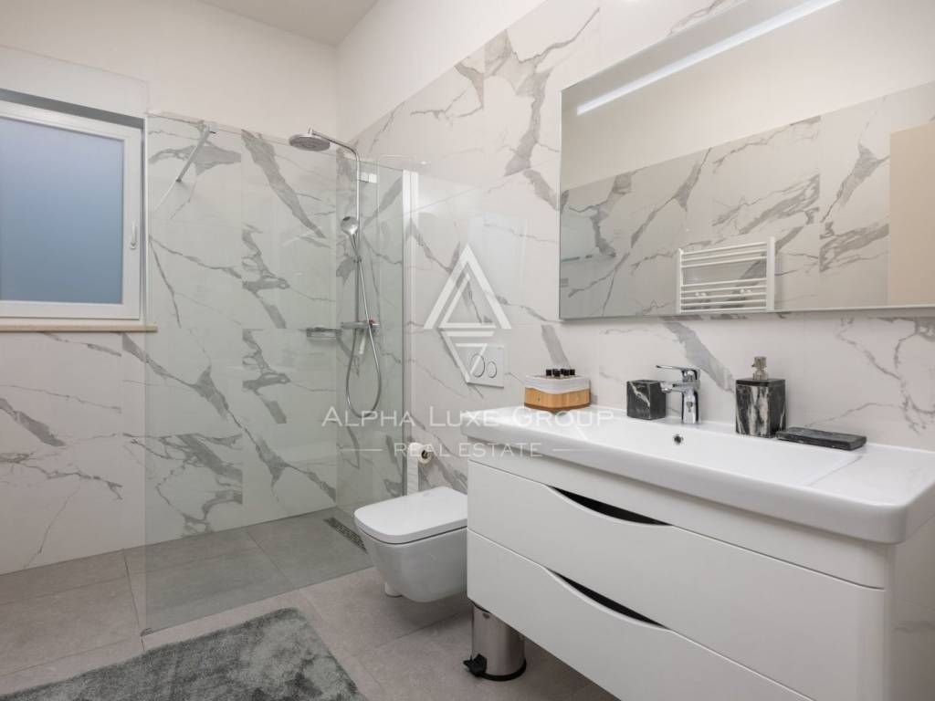 La villa è dotata di comfort all'avanguardia tra cui riscaldamento a pavimento alimentato da una pompa di calore Viesmann e aria condizionata in ogni stanza. I pannelli solari sul tetto forniscono un efficiente riscaldamento dell'acqua. Tutte le finestre e le pareti in vetro sono equipaggiate con tapparelle elettriche e zanzariere, garantendo comfort e privacy. I materiali di altissima qualità sono stati utilizzati nella costruzione e nell'arredamento della villa, con attenzione meticolosa ad ogni dettaglio. L'arredamento è stato scelto per offrire il massimo lusso e comfort.