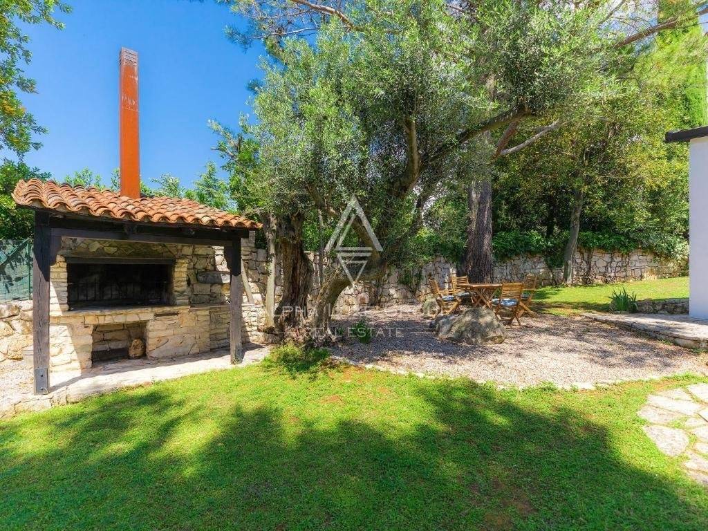 Attorno all'edificio principale, i tre bungalow costruiti in pietra in stile istriano tradizionale offrono privacy e comfort. La proprietà vanta anche una piscina centrale di 25 m² e un'area barbecue sotto vecchi pini per pranzi all'aperto. Il prato, meticolosamente mantenuto, dispone di irrigazione automatica.