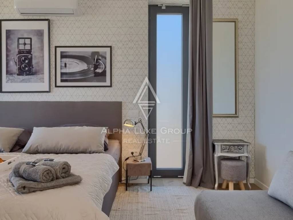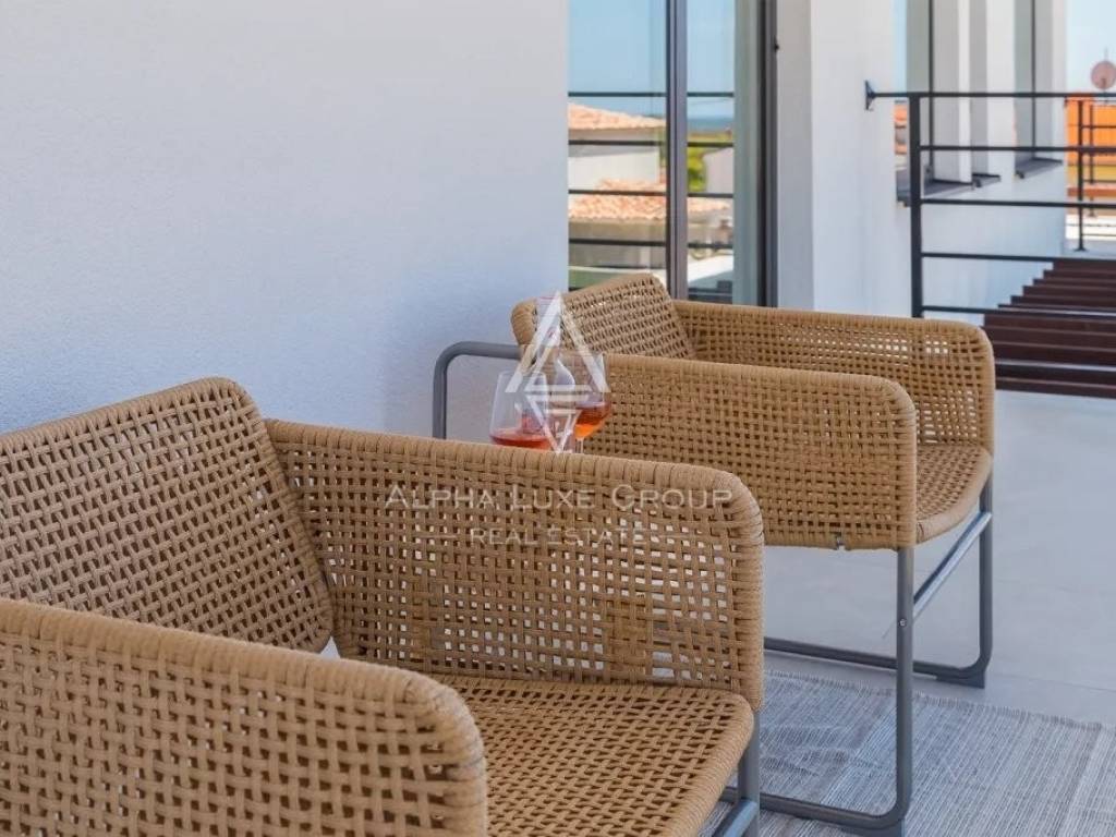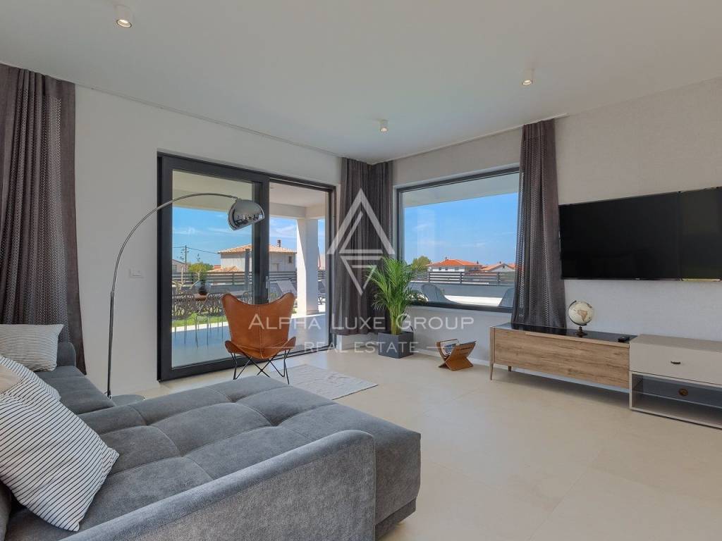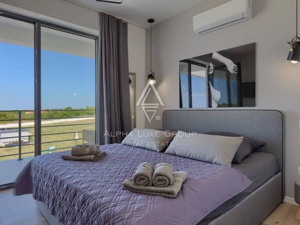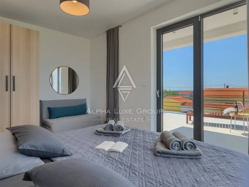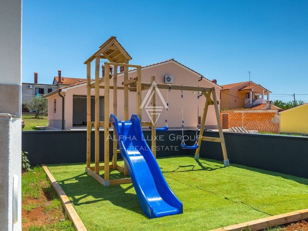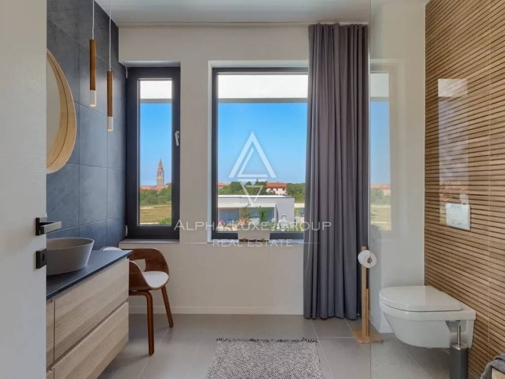 In vendita una splendida villa di lusso situata in una tranquilla zona di Galižana, Vodnjan. Questa moderna proprietà offre 136 m² di spazio abitativo, progettata con grande attenzione ai dettagli e rifinita con materiali di alta qualità. La villa si sviluppa su due piani, offrendo ampio spazio per il comfort e il relax. Il piano terra presenta un ampio open space con cucina completamente attrezzata, soggiorno, sala da pranzo e un bagno per gli ospiti. Le grandi vetrate offrono una vista mozzafiato sulla piscina, su un giardino ben curato con cucina esterna, area barbecue e viste panoramiche sulla vegetazione circostante e sulle Isole Brioni.