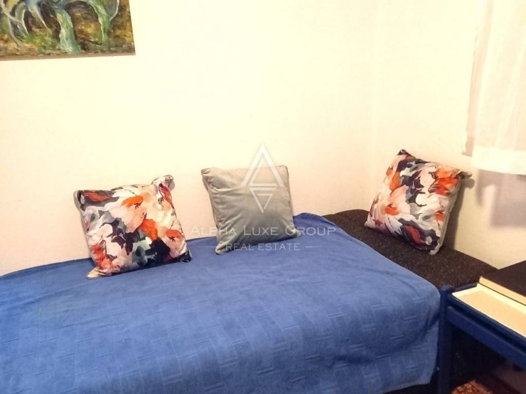 L'appartamento si trova al primo piano ed è luminoso e arioso. È composto da tre camere da letto, un bagno, una cucina con sala da pranzo, un soggiorno e un balcone con una splendida vista sul mare.