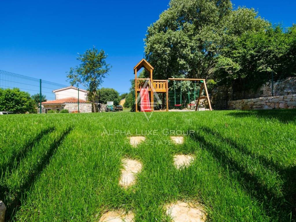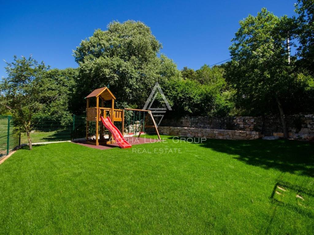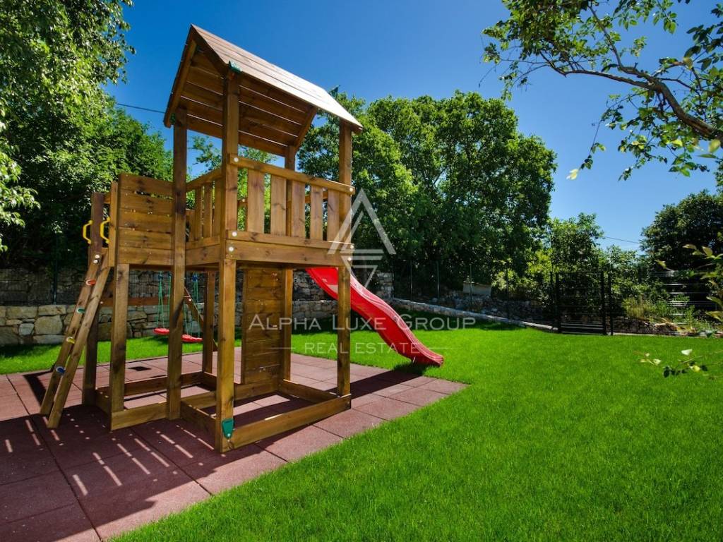 Accanto alla casa principale si trova uno spazio aggiuntivo di 50 m² distribuito su due livelli ancora da completare, perfetto per creare nuove stanze, un’area wellness o qualunque soluzione personalizzata desideri il futuro proprietario. L’area esterna include una piscina riscaldata con acqua salata di 24 m², una terrazza solarium, una zona barbecue e un giardino curato con un’area giochi di 120 m². Inoltre, sono disponibili 200 m² di terreno edificabile per eventuali ampliamenti.