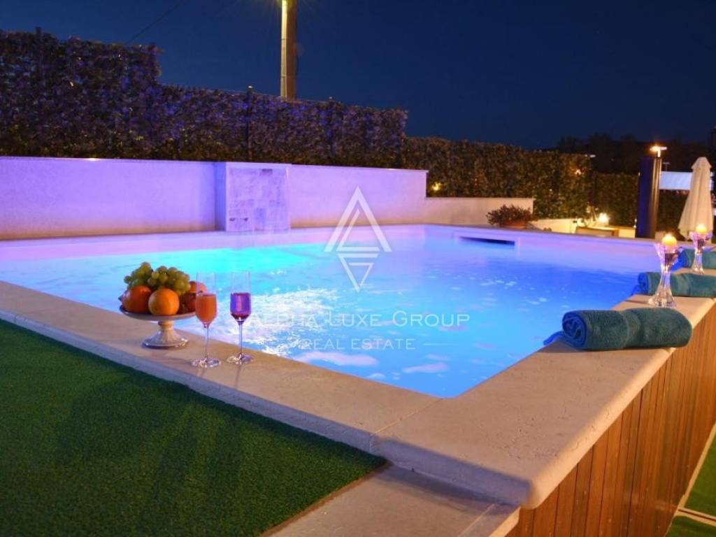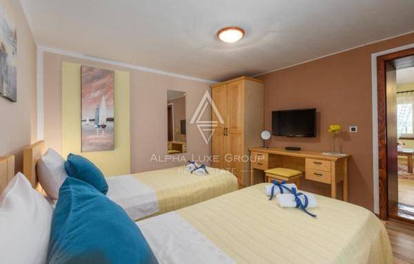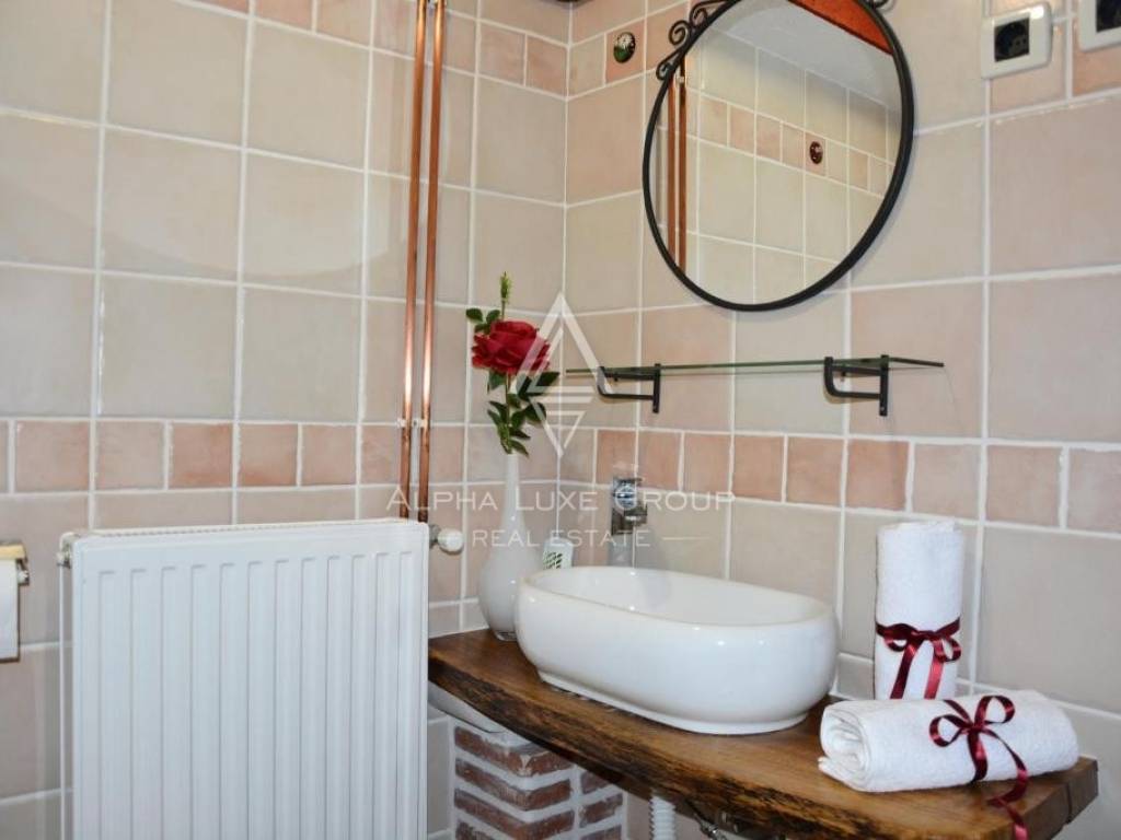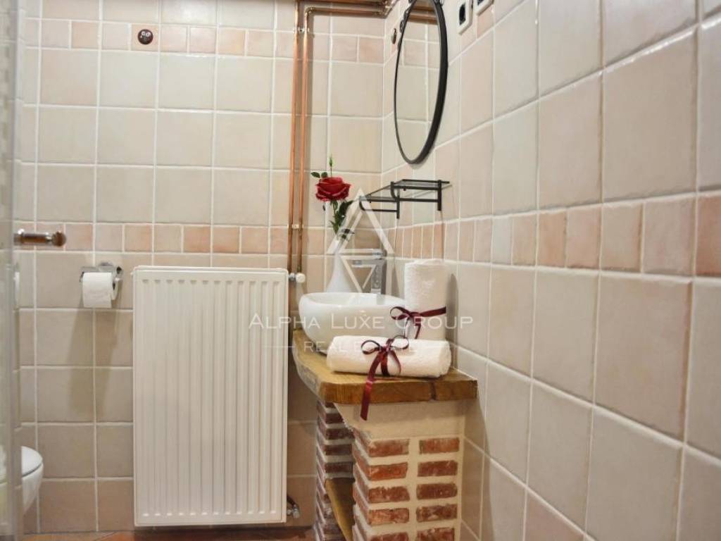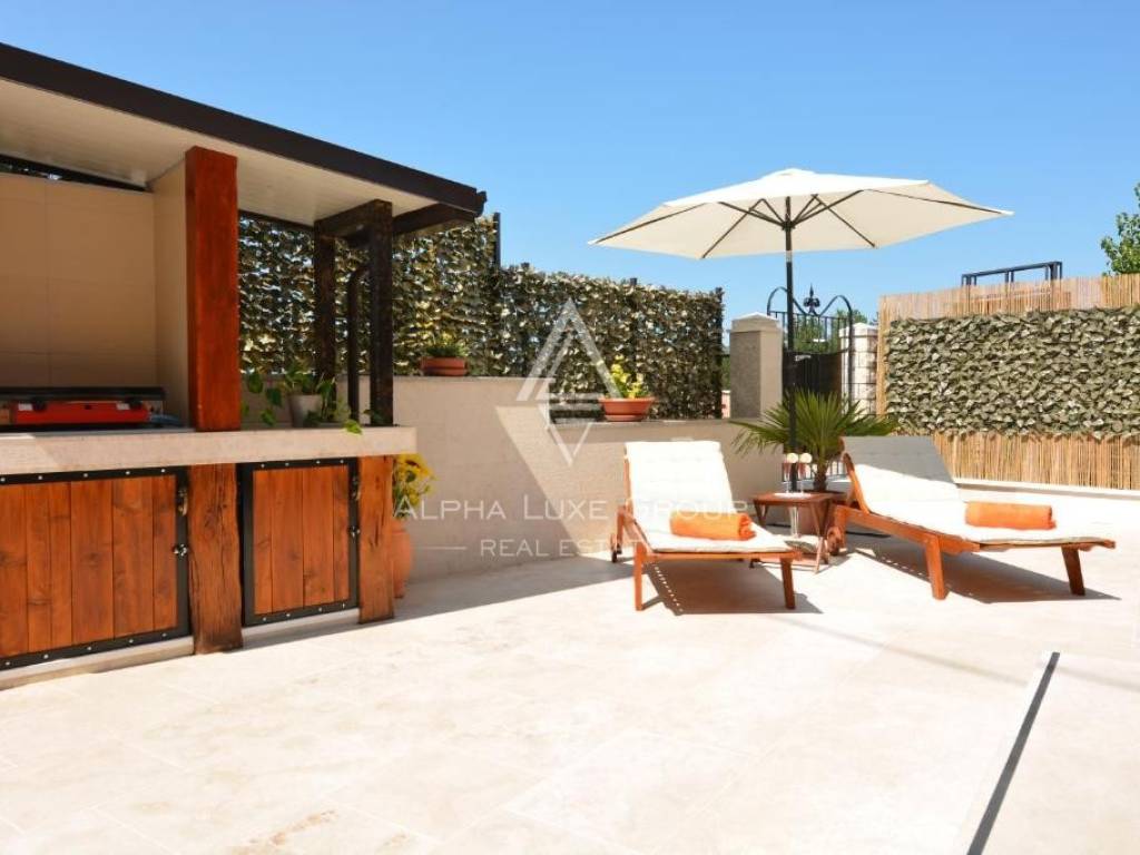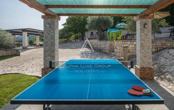 Una parte della casa è un’incantevole sezione in pietra finemente restaurata, estesa tra il piano terra e il primo piano. Ristrutturata con grande attenzione per mantenere il suo autentico fascino istriano, offre interni caldi arricchiti da dettagli in legno e pietra naturale. Questa unità comprende un luminoso soggiorno, una cucina con zona pranzo, un bagno per gli ospiti, tre camere da letto, un bagno principale e un’ampia terrazza coperta che si apre su un cortile pavimentato con accesso diretto alla piscina.