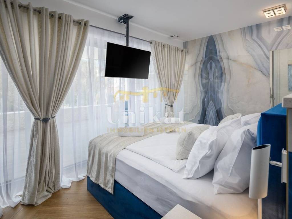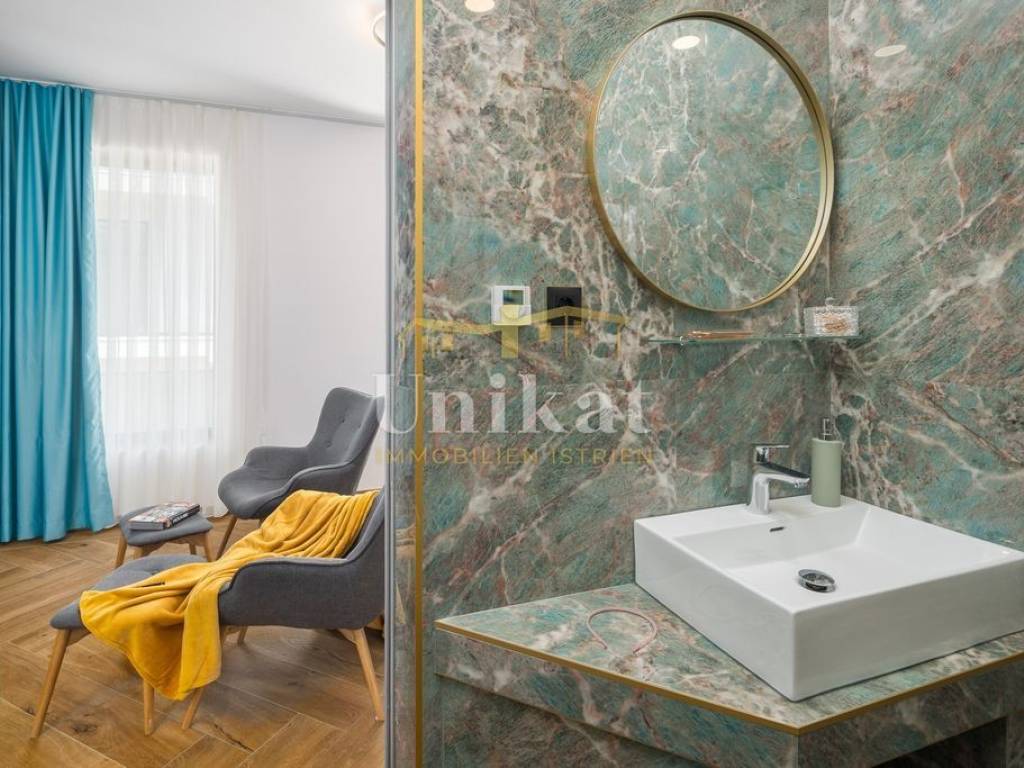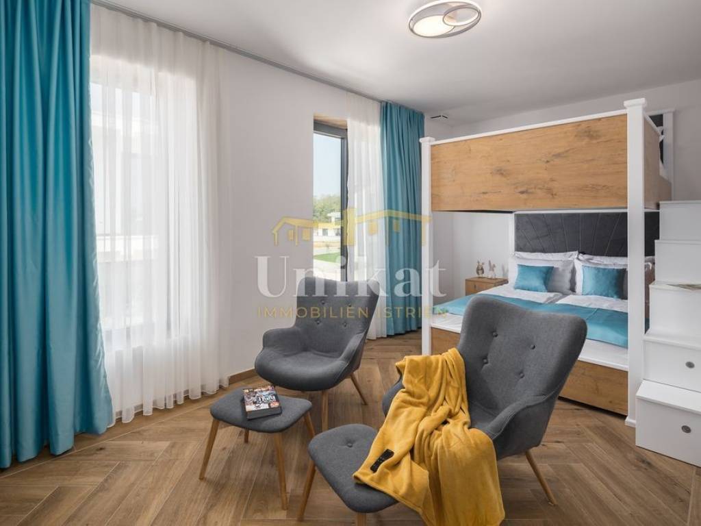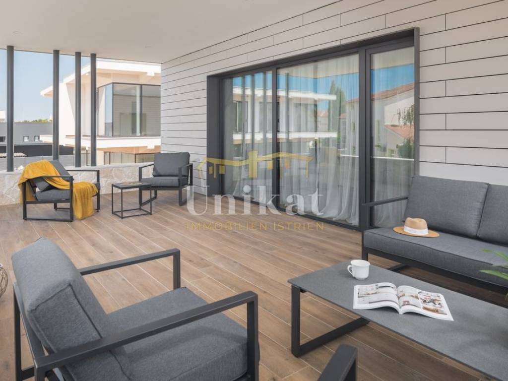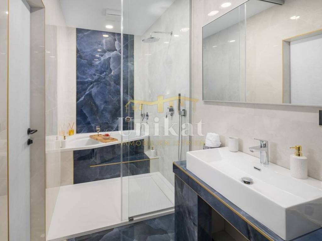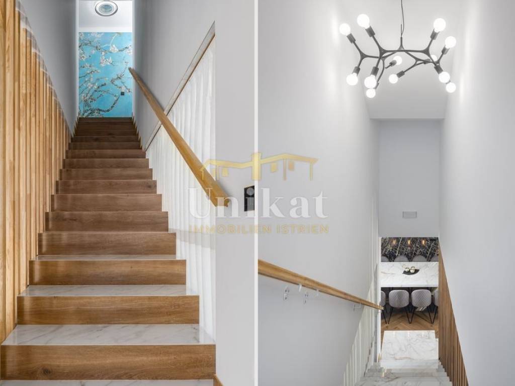 Imponente villa moderna a soli 400 metri dal mare e dalle prime spiagge. Al piano terra della villa si trovano l’ingresso, un ampio soggiorno, cucina e sala da pranzo, locale tecnico, due camere da letto e due bagni, mentre al piano superiore ci sono altre tre camere da letto, ciascuna con il proprio bagno e una terrazza coperta di 30 m². Nel giardino si trovano anche una piscina di 30 m², un giardino e tre posti auto. La villa viene venduta prevalentemente arredata.