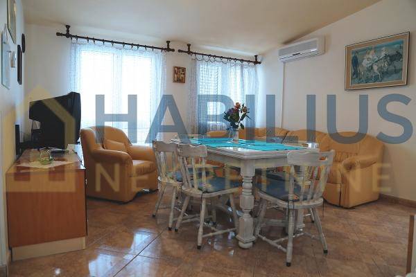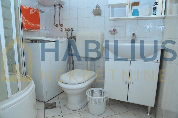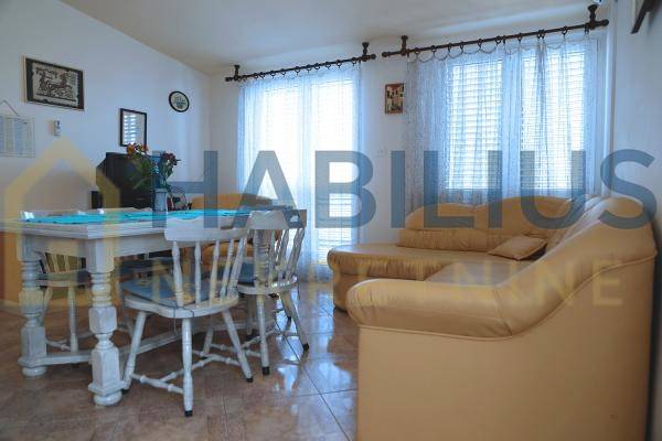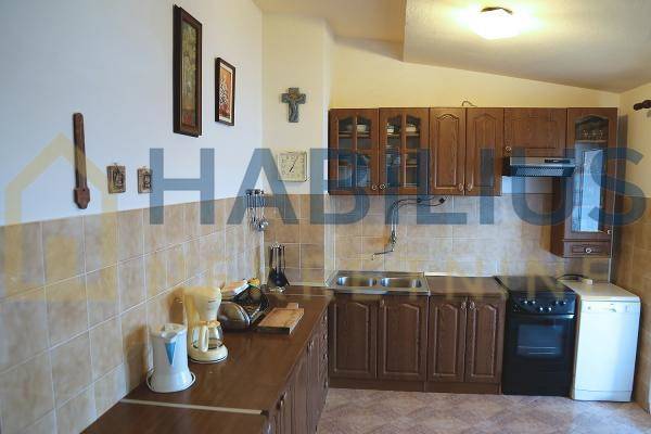 U prizemlju je 2sobni stan od cca 65m2 s velikom terasom i pogledom na more. Održavan i namješten.