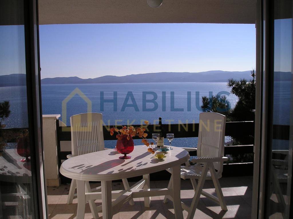Na 1.katu je 2sobni stan od cca 65m2 s velikom terasom i otvorenim pogledom na more. Održavan i namješten.