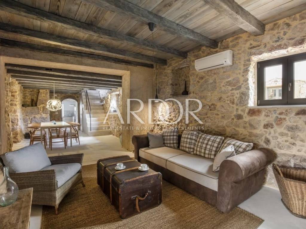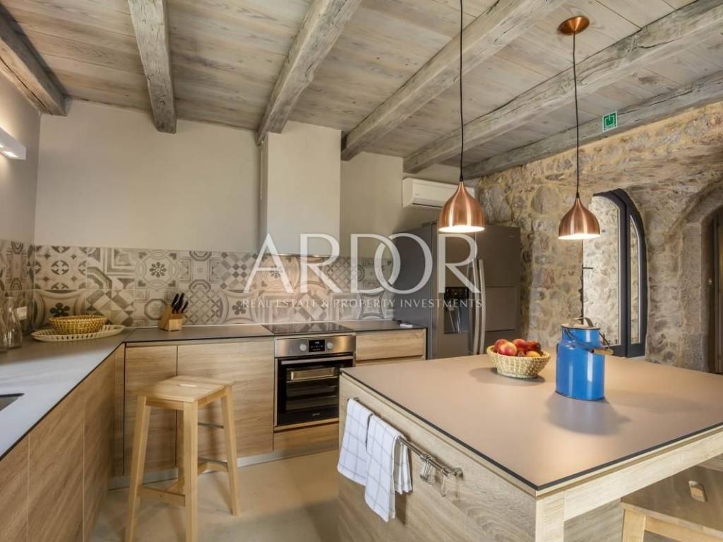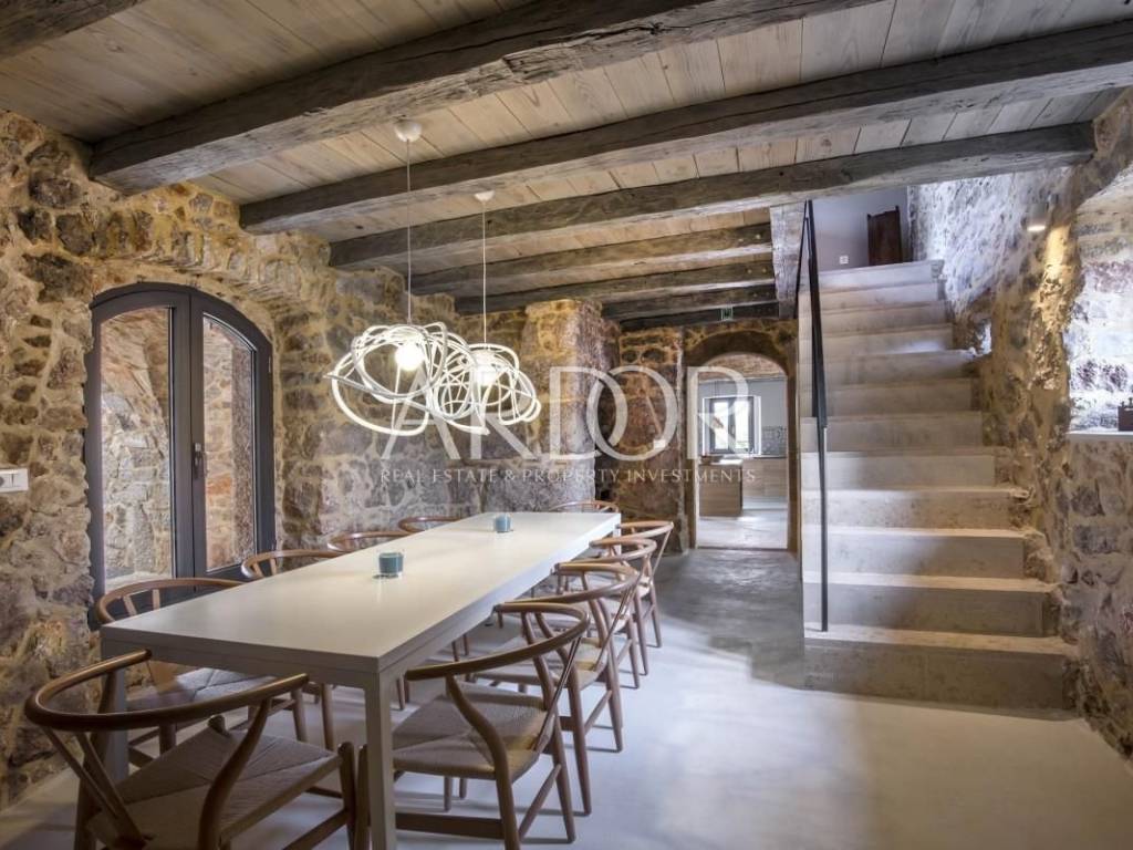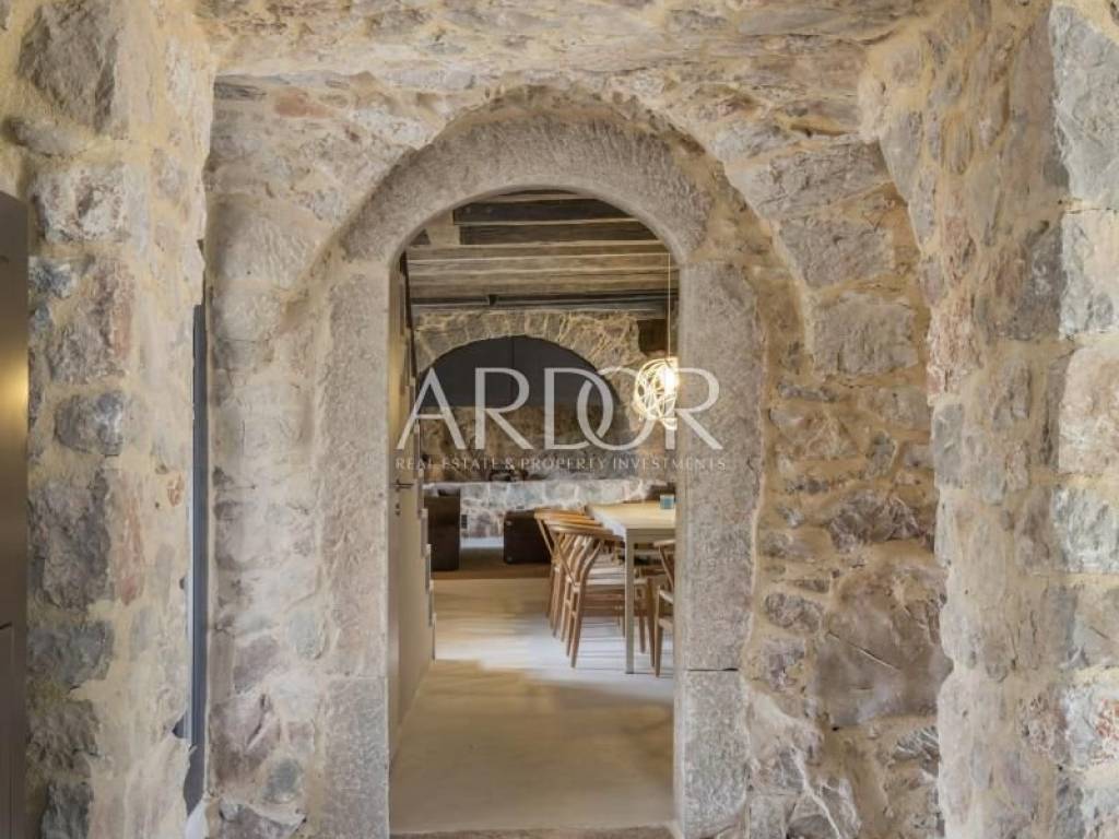 Situata su un ampio terreno di 2.115 m², ai margini tranquilli di un pittoresco villaggio sull’isola di Krk, questa straordinaria casa in pietra del XIX secolo offre totale privacy, comfort e un autentico stile di vita mediterraneo.
