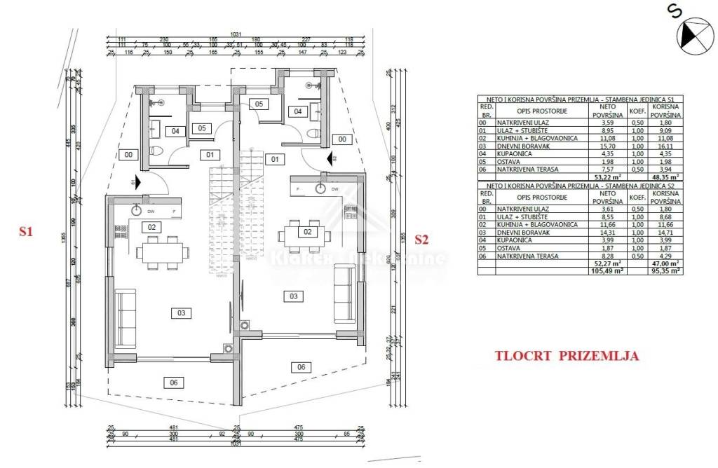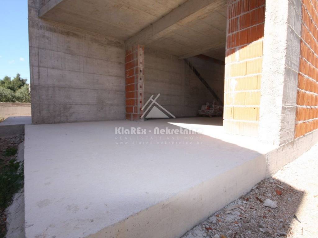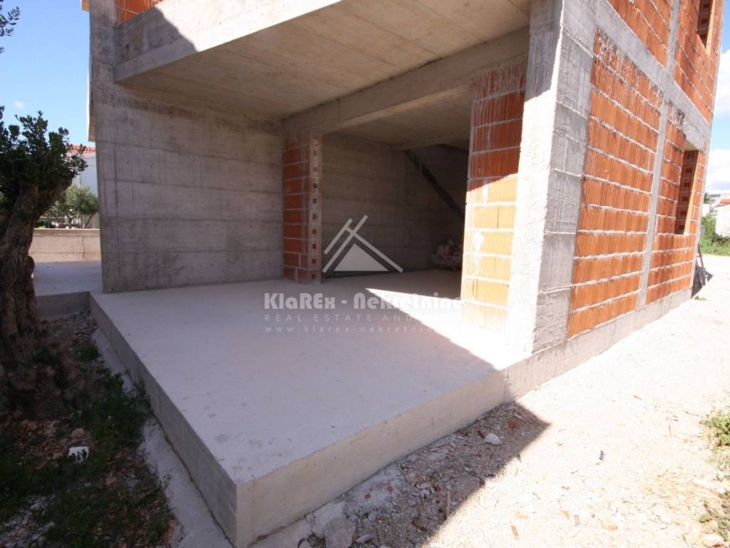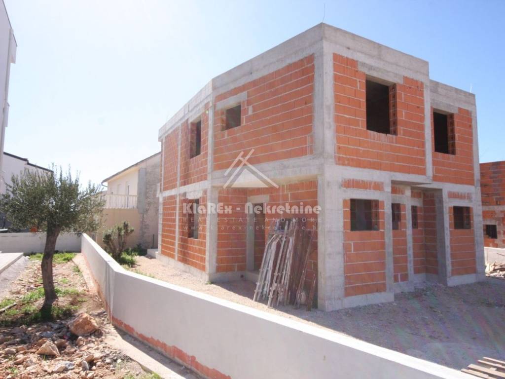 Two semi-detached houses are for sale in Vodice, at a distance of about 650 meters from the center, i.e. the beach. It is a residential building in the Rohbau phase of construction. The houses are sold on a turnkey basis, and the project is expected to be completed by the end of this calendar year. These are buildings on two floors, and each of them will have three bedrooms, two bathrooms and a storage room. In addition, each building has a small garden and two parking spaces. The property is clean, and a valid building permit has been issued for the construction of the building. Payment dynamics in agreement with the investor. On offer is: