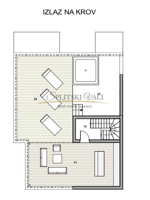 Neto stambena površina iznosi 116,56 m, dok ukupna bruto površina s krovnom terasom iznosi 193,59 m.
