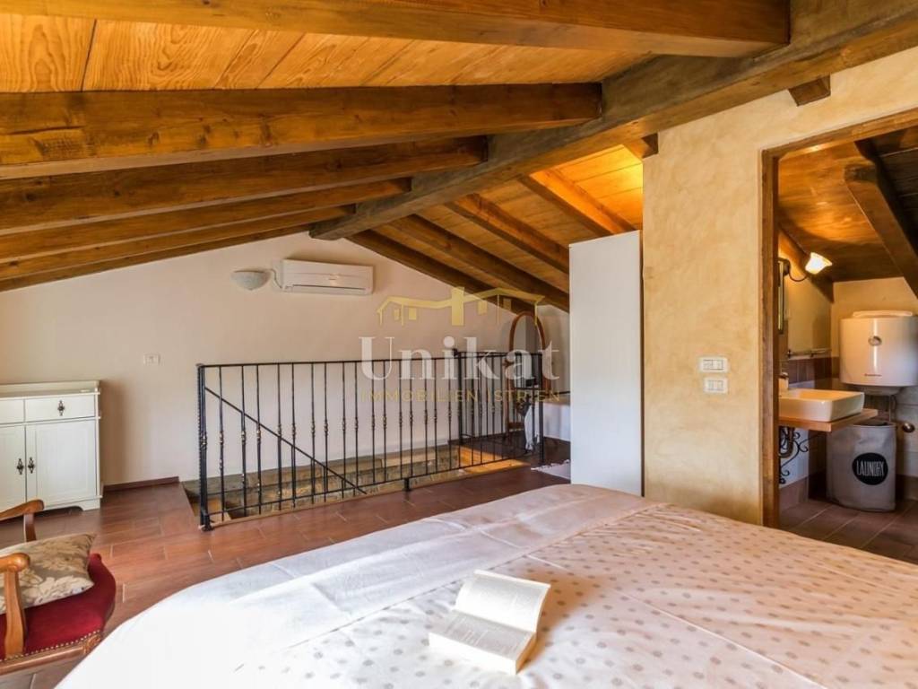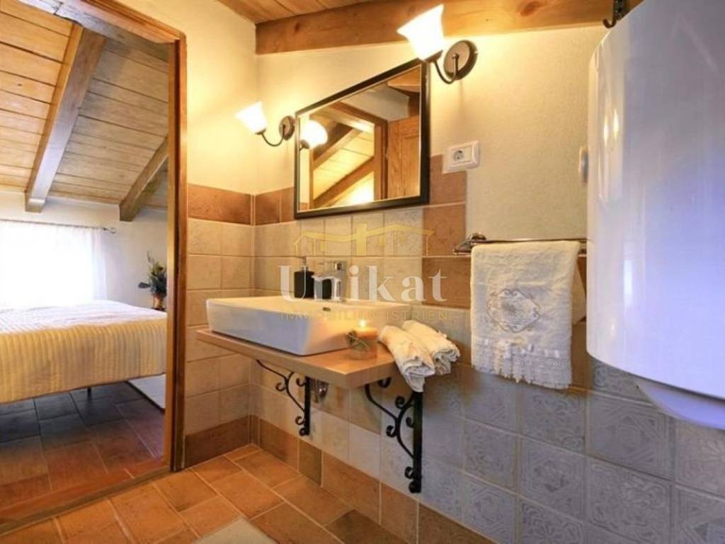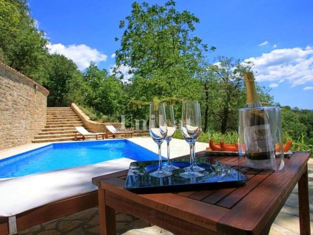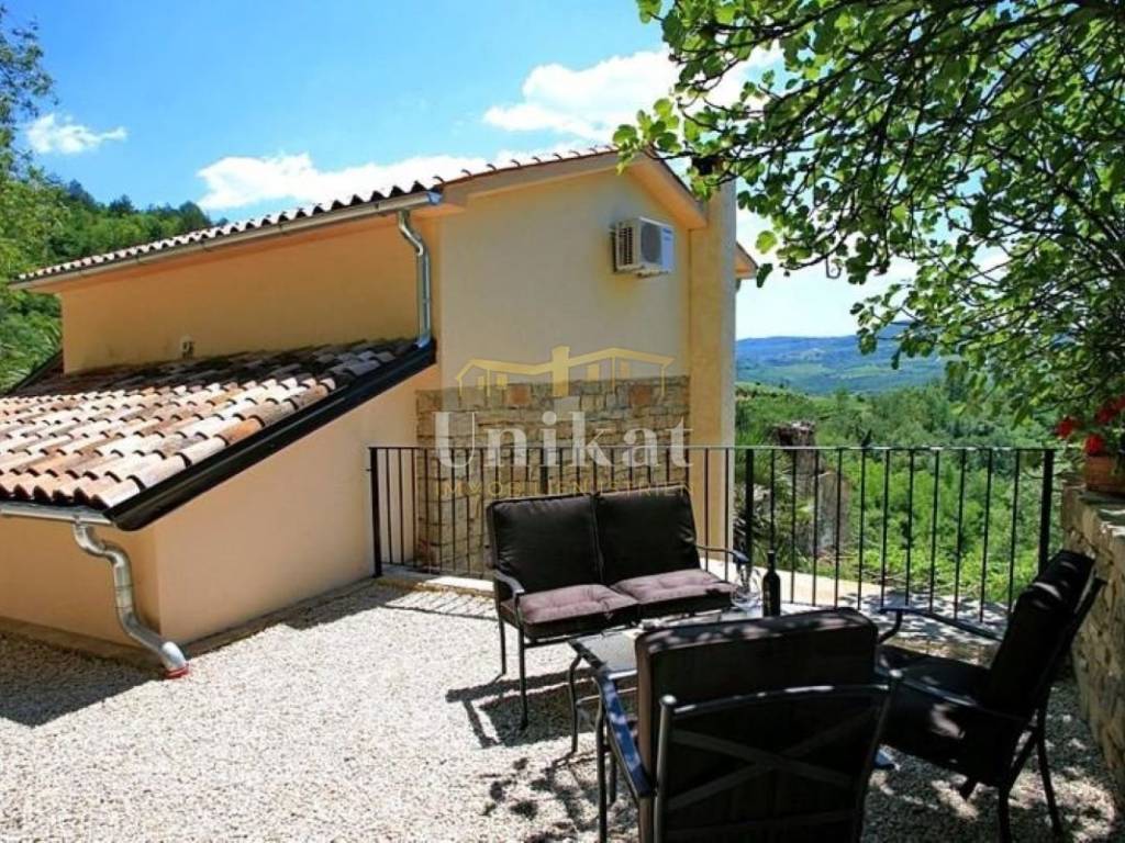 Casa indipendente in pietra nella Istria Centrale, a pochi chilometri da Motovun, con una splendida vista sulla natura. La posizione offre tranquillità e privacy. La casa è stata completamente ristrutturata nel 2015. Si compone di soggiorno con cucina e zona pranzo, due camere da letto, due bagni e terrazza. Sul terreno si trovano piscina e barbecue. La casa è dotata di climatizzatori per riscaldamento e raffreddamento e di camino. Viene venduta arredata.